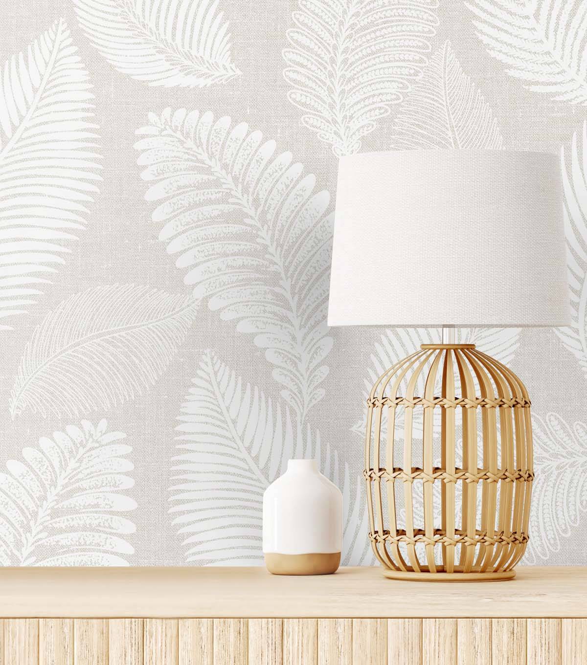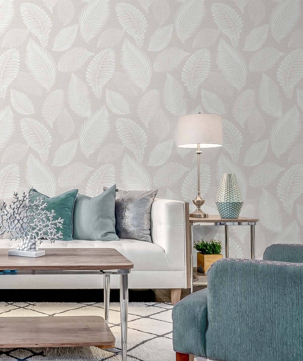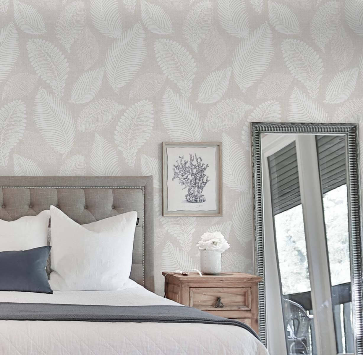 Seabrook White Heron Tossed Leaves Wallpaper - Cool Linen