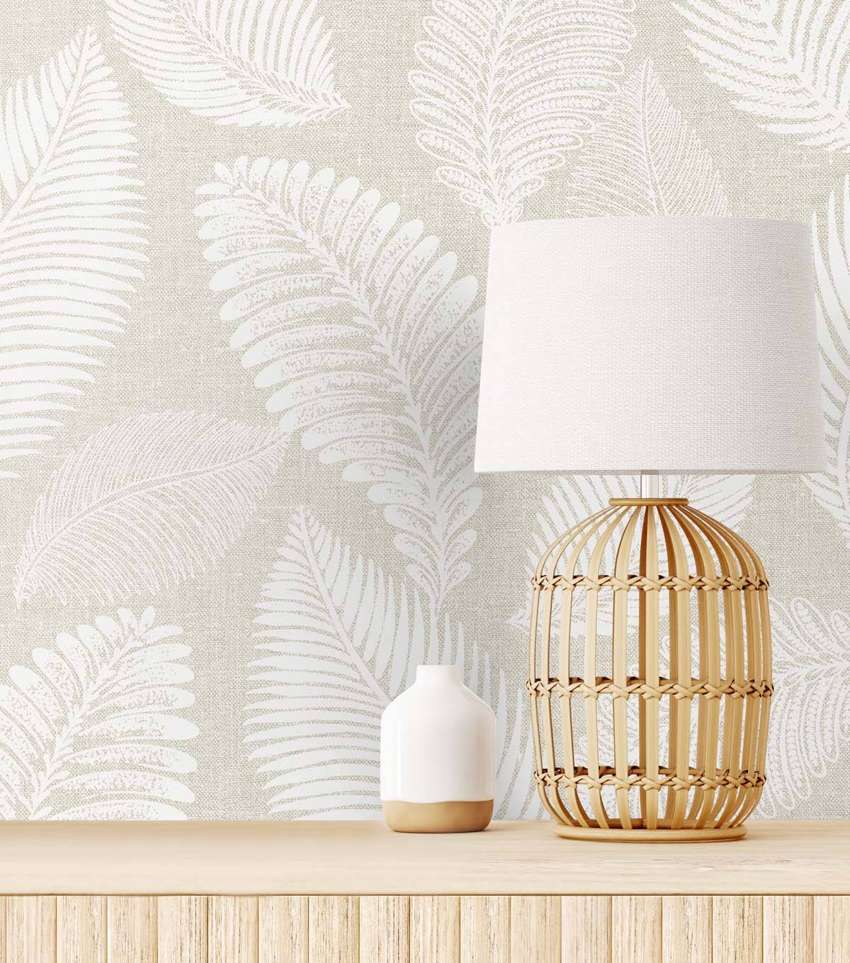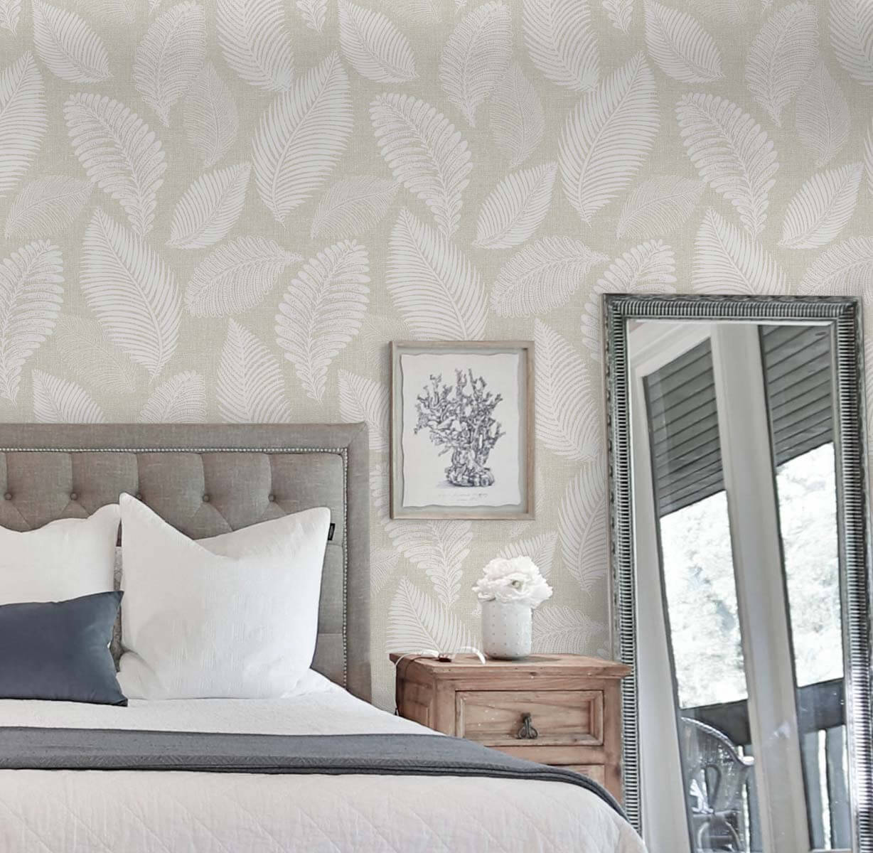Seabrook White Heron Tossed Leaves Wallpaper - Warm Sand
