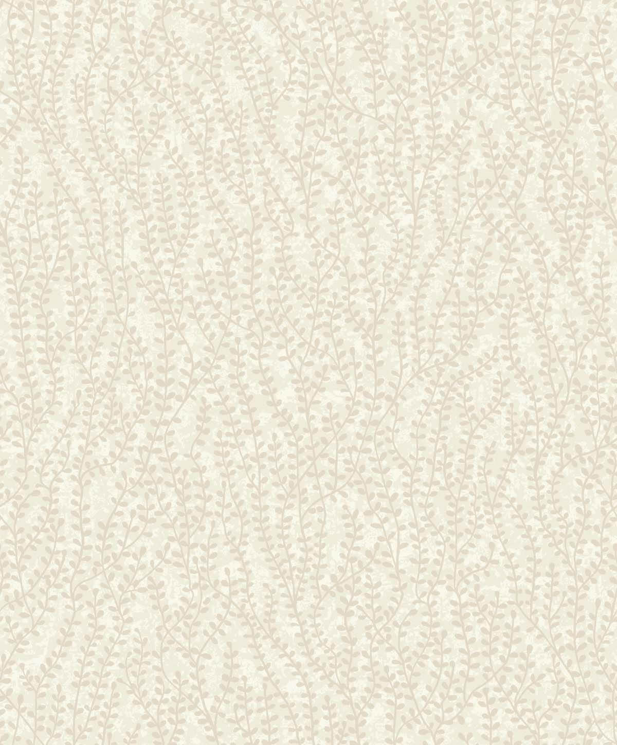 Seabrook White Heron Seaweed Branches Wallpaper - Off White Satin