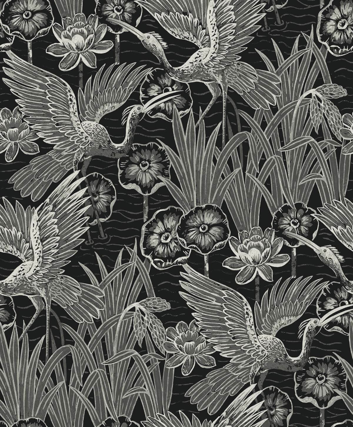Seabrook White Heron Marsh Cranes Wallpaper - Midnight