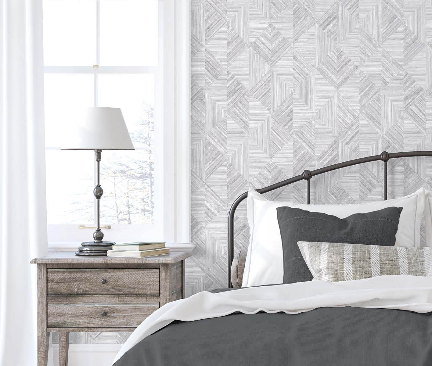 Seabrook White Heron Diamond Inlay Wallpaper - Dove Wing