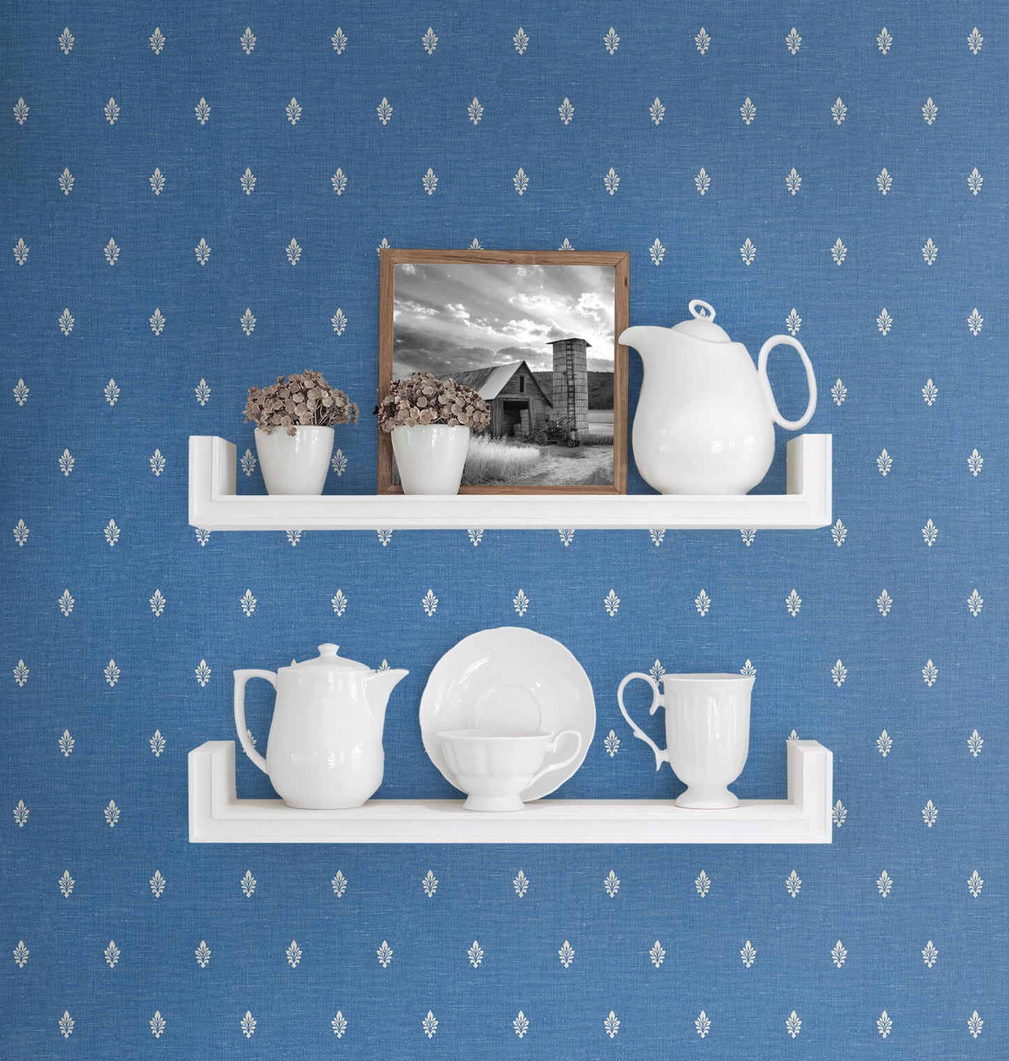 Seabrook French Country Petite Feuille Sprig Wallpaper - Denim Wash