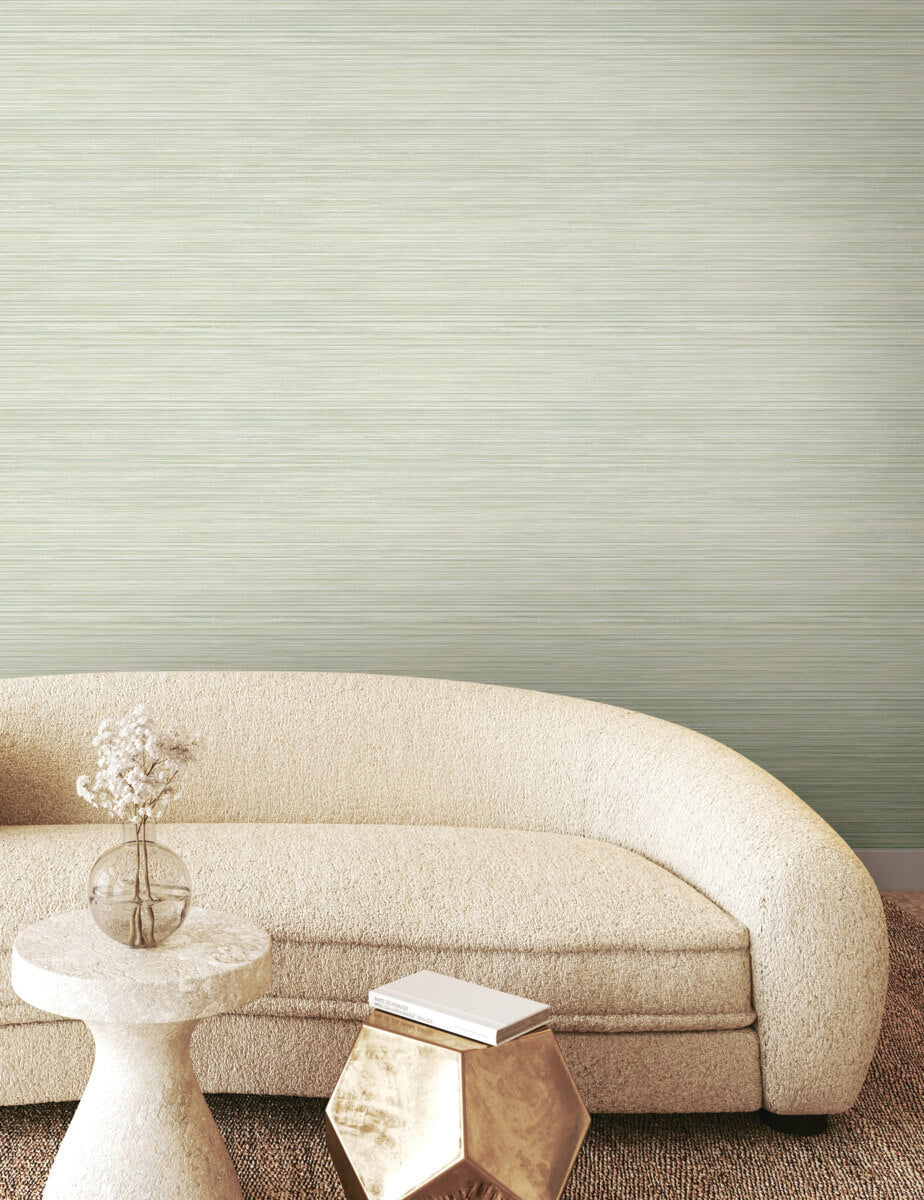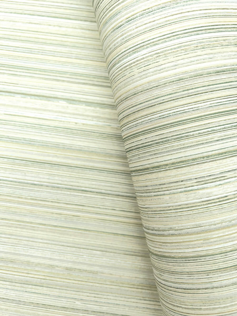 Classic stripes are elevated with intricate raised linework and a restricted color palette of green, beige, and cream. This Alignment Wallpaper measures approximately 27 inches wide by 27 feet long, measuring approximately 60.8 square feet per roll. Textural, organic forms grounded in earthly inspiration.