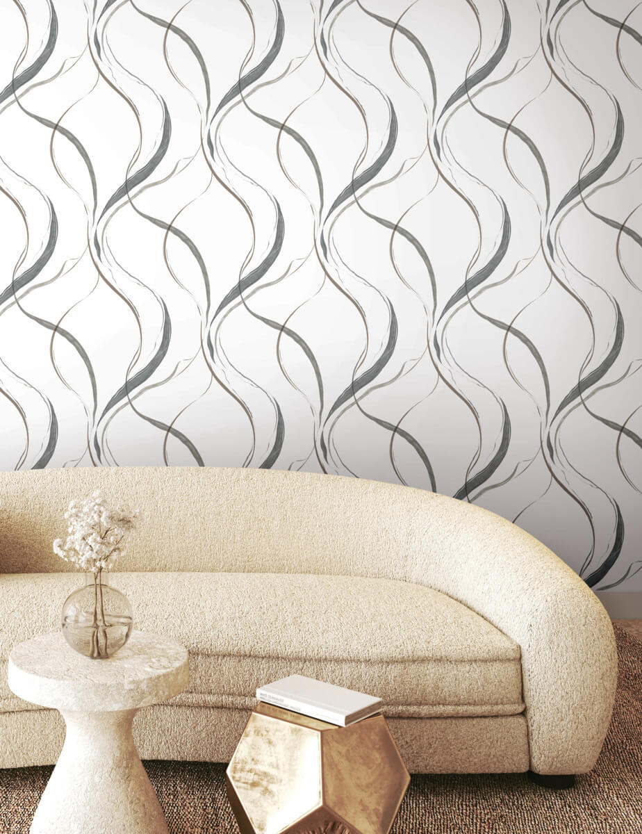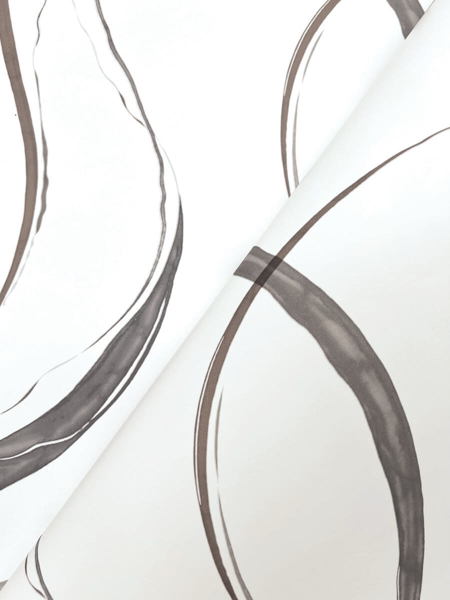 Airy and ethereal, Ink Flow's swirling ribbons of charcoal and brown twirl close together and then part. This Ink Flow Wallpaper measures approximately 27 inches wide by 27 feet long, measuring approximately 60.8 square feet per roll. Textural, organic forms grounded in earthly inspiration.