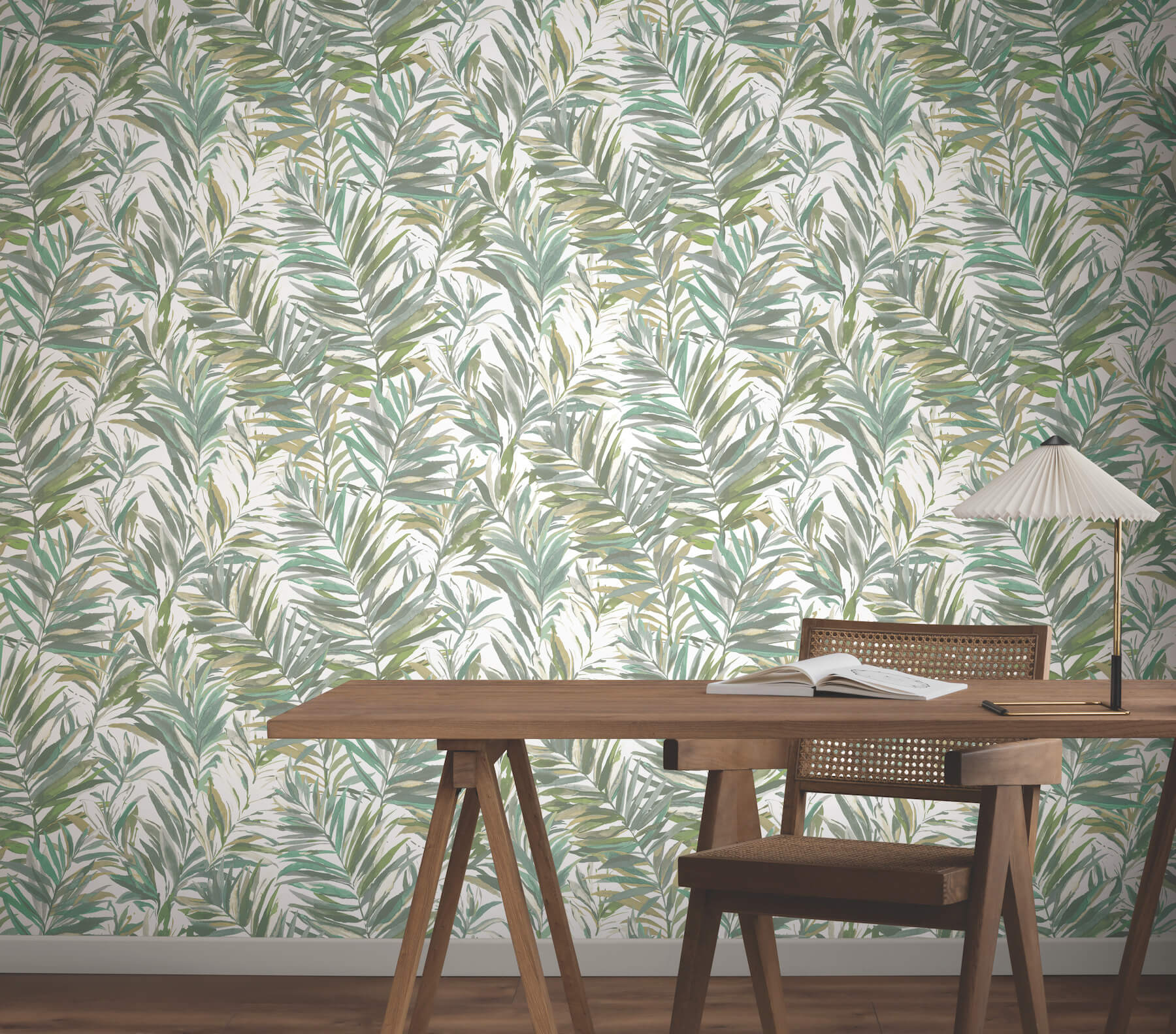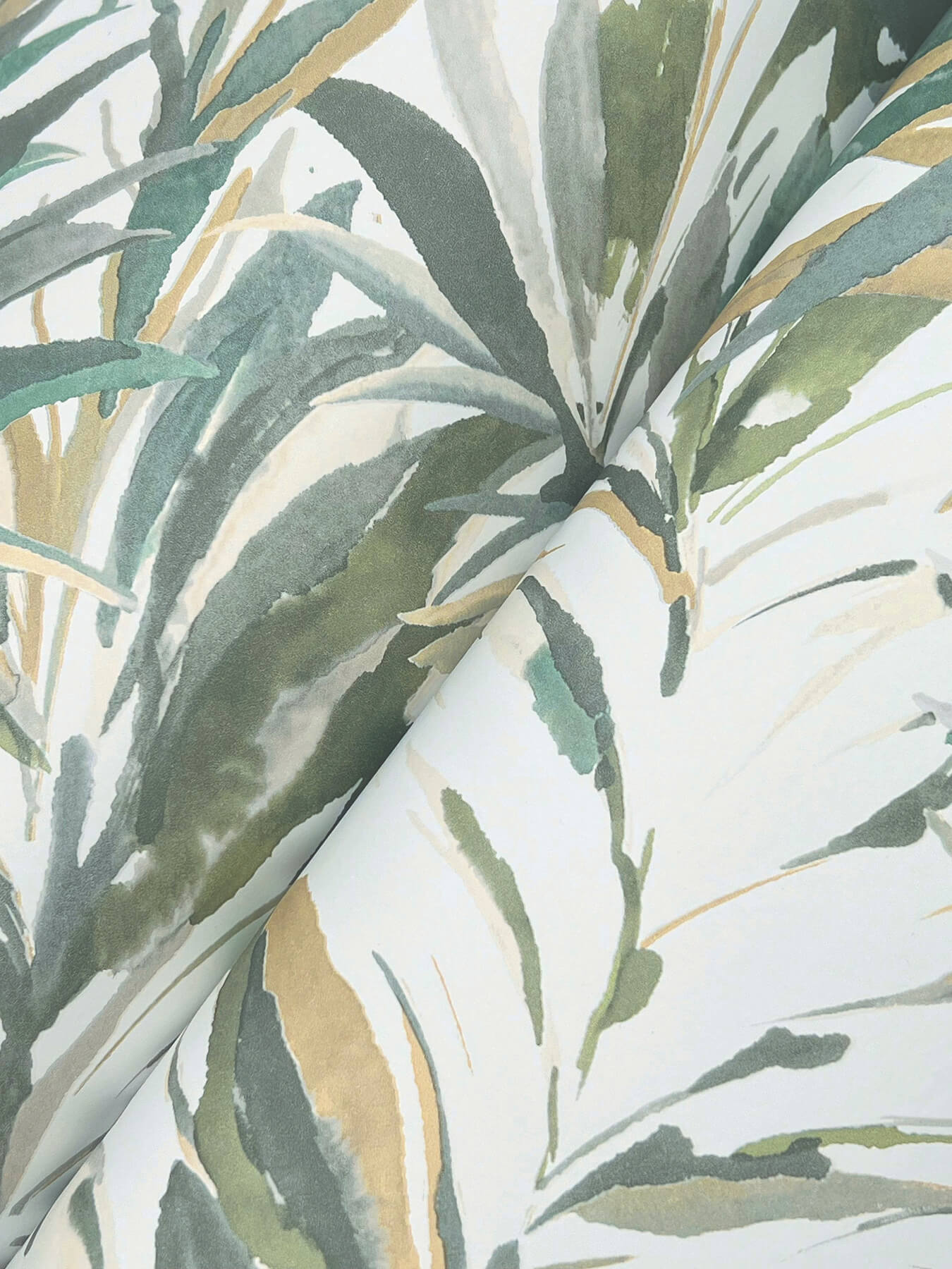 York Woodnote Swaying Palms Wallpaper - Olive & Aegean