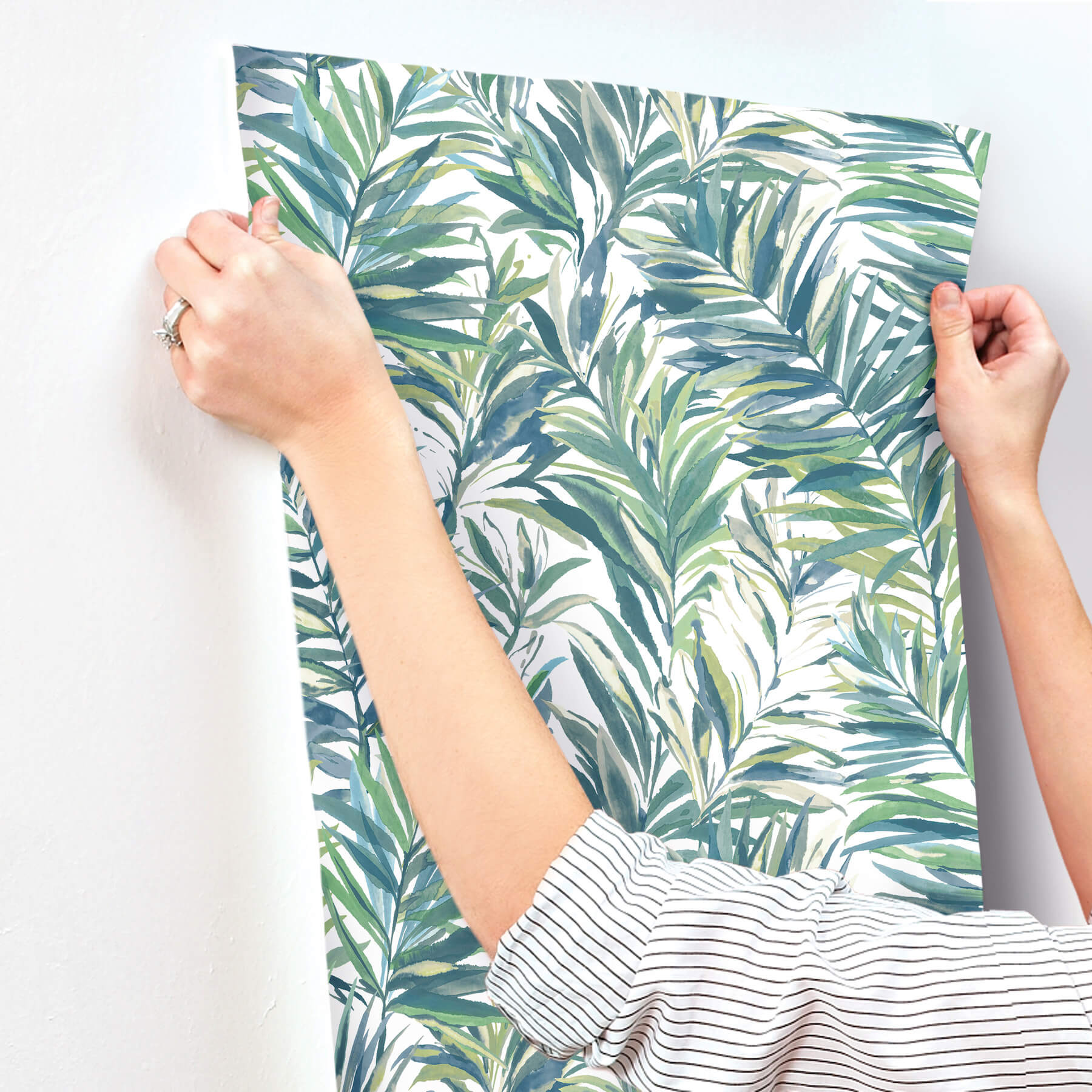 Enjoy luxurious seclusion with Swaying Palms' sophisticated and organic privacy screen composed of lush, overlapping fronds. Featured here in shades of teal, indigo, lime, spring green, and beige. This Swaying Palms Wallpaper measures approximately 27 inches wide by 27 feet long, measuring approximately 60.8 square feet per roll. The song of the forest echoes within the rich, earthen textures and greenery of this nature-inspired collection.