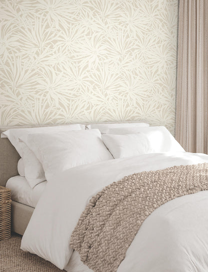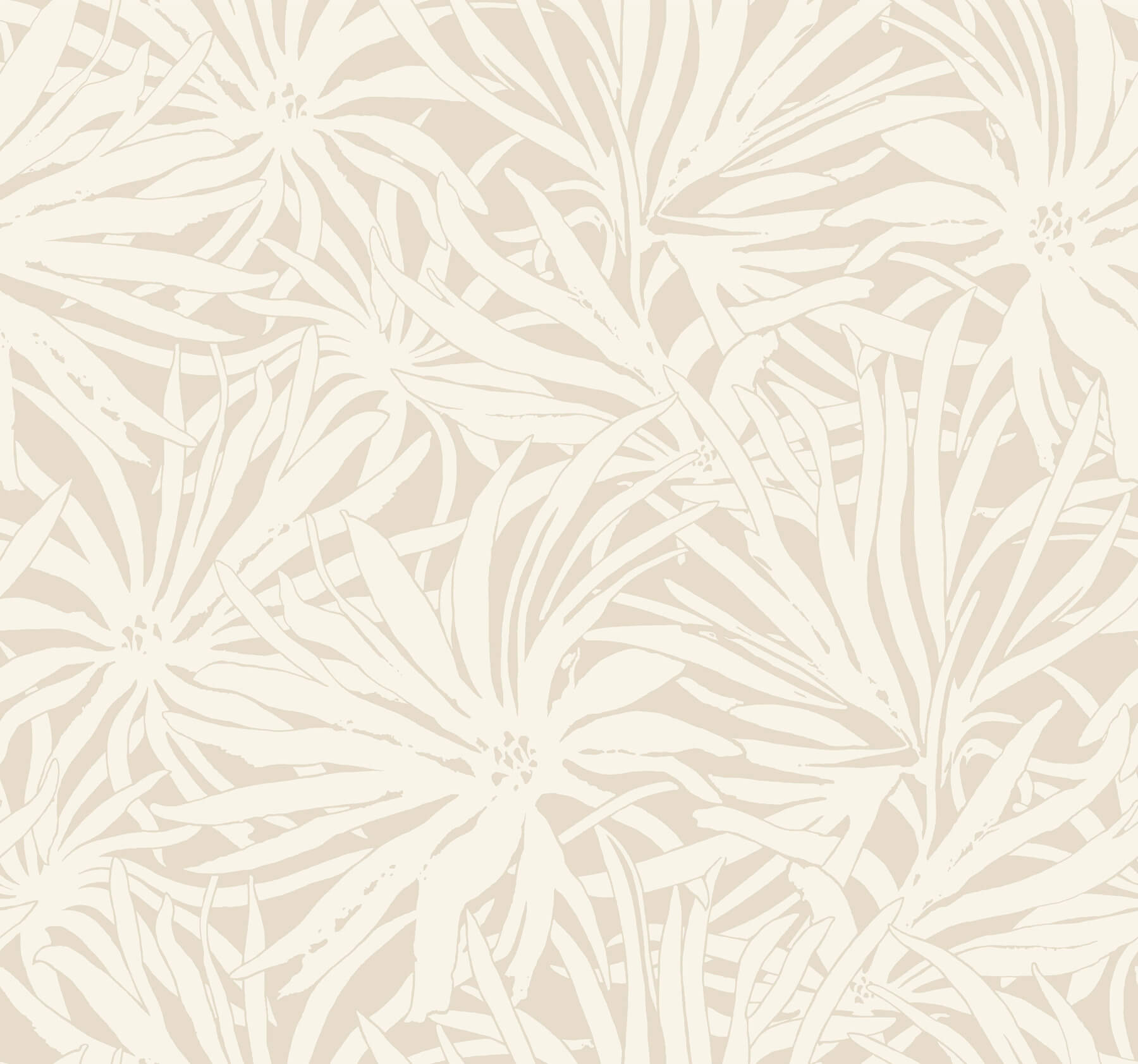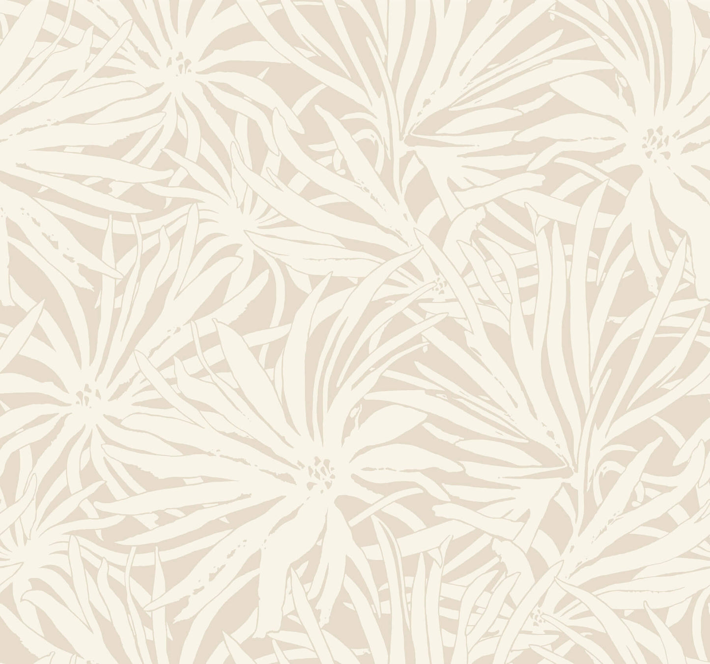 Spindly flowers create an inviting tangle of silhouettes in design Floral Canopy. Seen here in white against warm beige. This Floral Canopy Wallpaper measures approximately 27 inches wide by 27 feet long, measuring approximately 60.8 square feet per roll. The song of the forest echoes within the rich, earthen textures and greenery of this nature-inspired collection.