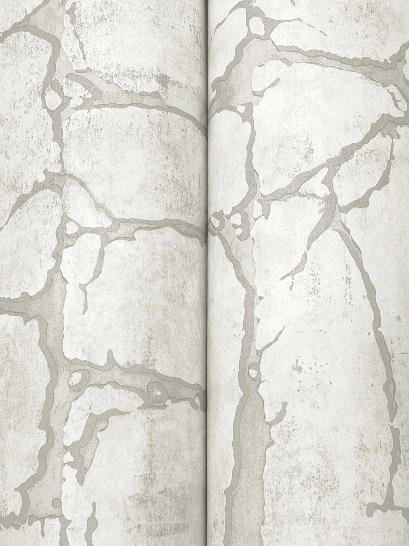 Fissures in hard-packed earth showcase the beauty of durability in pattern Mojave. Featured here in vintage white with grey accents. This Mojave Wallpaper measures approximately 27 inches wide by 27 feet long, measuring approximately 60.8 square feet per roll. The song of the forest echoes within the rich, earthen textures and greenery of this nature-inspired collection.