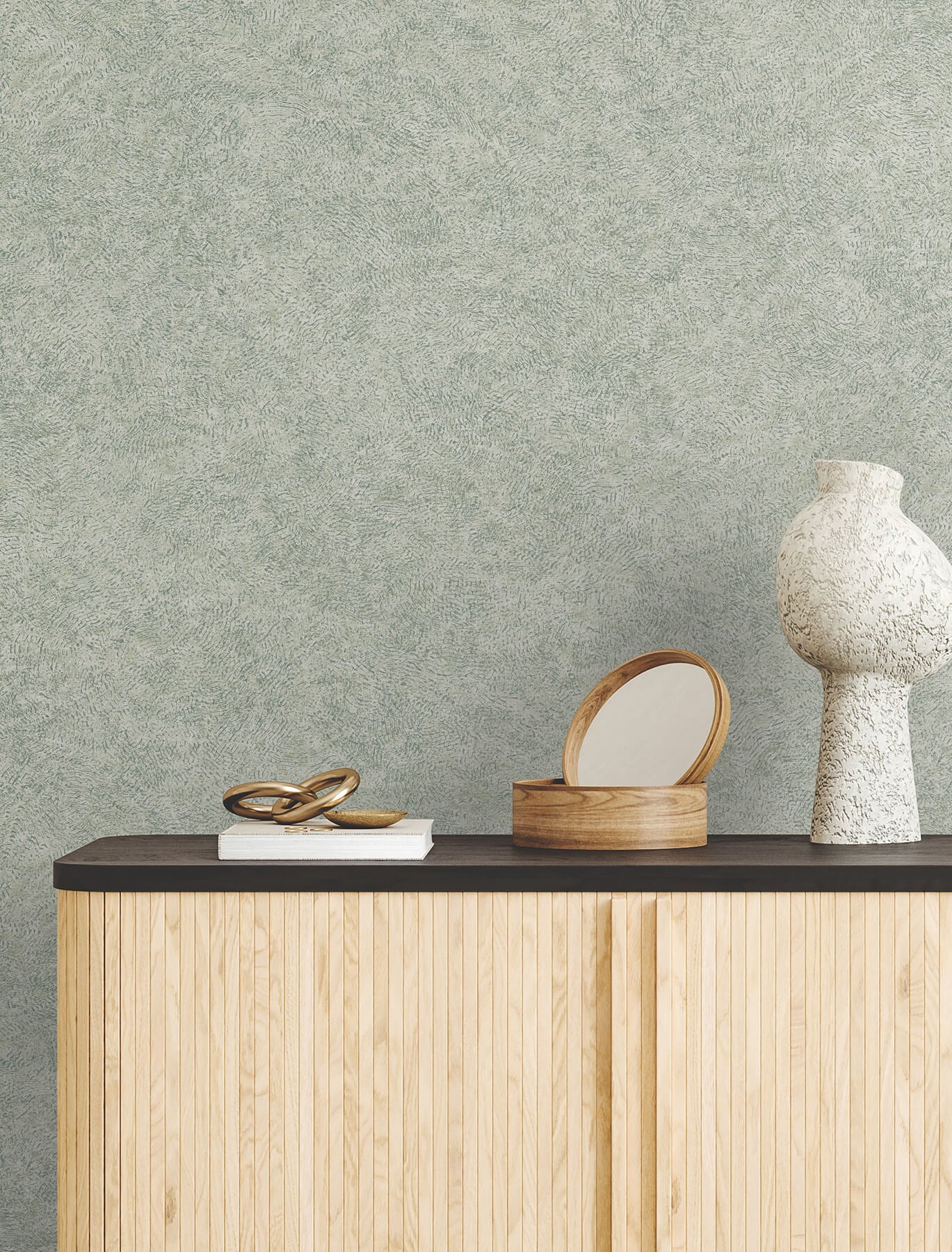 Impression's hypnotic texture is created from the convergence of numerous radiating ripples. Seen here in sea green, teal, and pale grey. This Impression Wallpaper measures approximately 27 inches wide by 27 feet long, measuring approximately 60.8 square feet per roll. The song of the forest echoes within the rich, earthen textures and greenery of this nature-inspired collection.