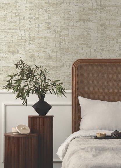 Pop The Cork perfectly captures the organic elegance of cork, its rich dimension replicated on a slightly larger scale. Featured here in ivory, beige, and light grey with metallic accents. This Pop The Cork Wallpaper measures approximately 27 inches wide by 27 feet long, measuring approximately 60.8 square feet per roll. The song of the forest echoes within the rich, earthen textures and greenery of this nature-inspired collection.