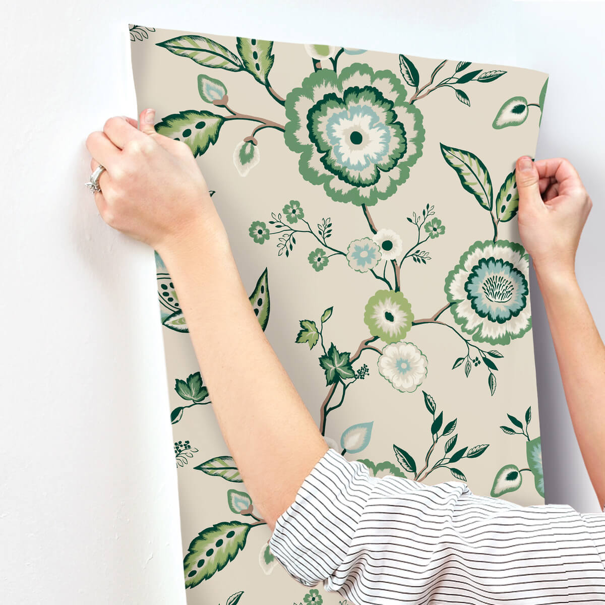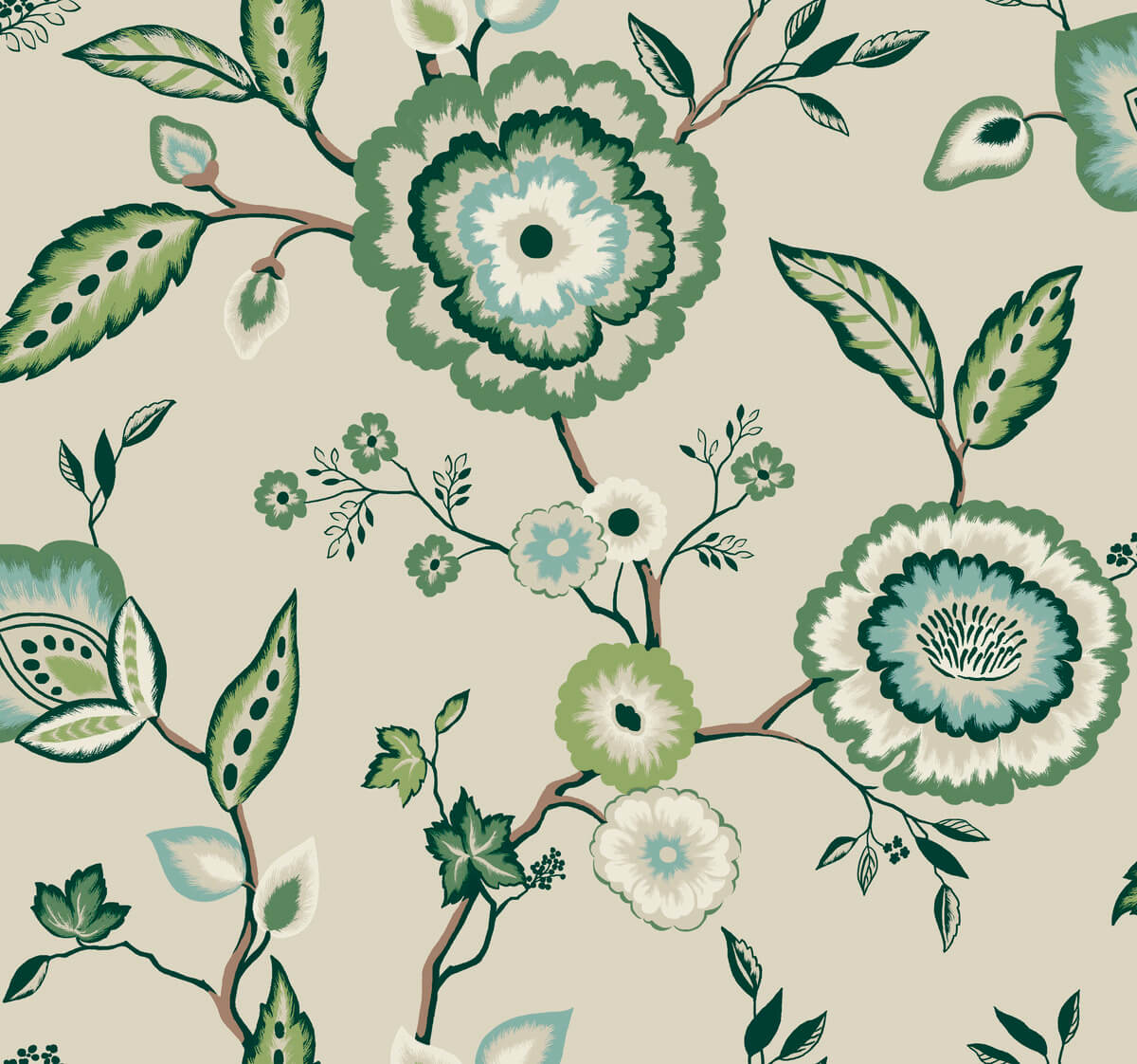 York Greenhouse Dahlia Blooms Wallpaper - Linen & Jade