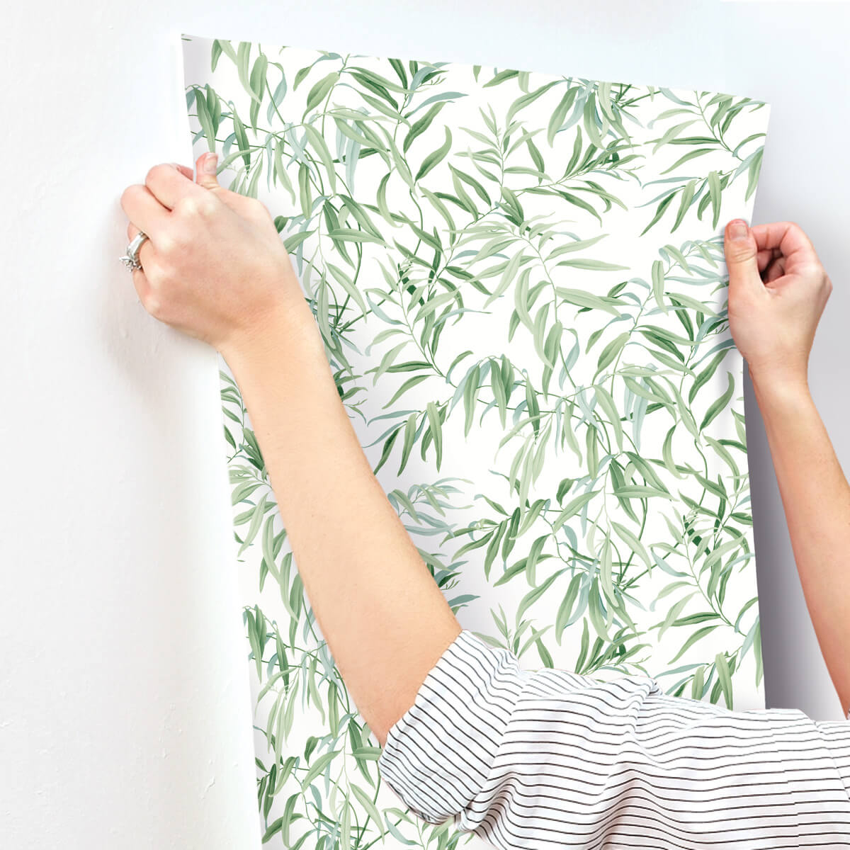 The slender lines of the willow tree’s graceful branches create a bower of beautiful, natural leaves in pattern Willow Grove.