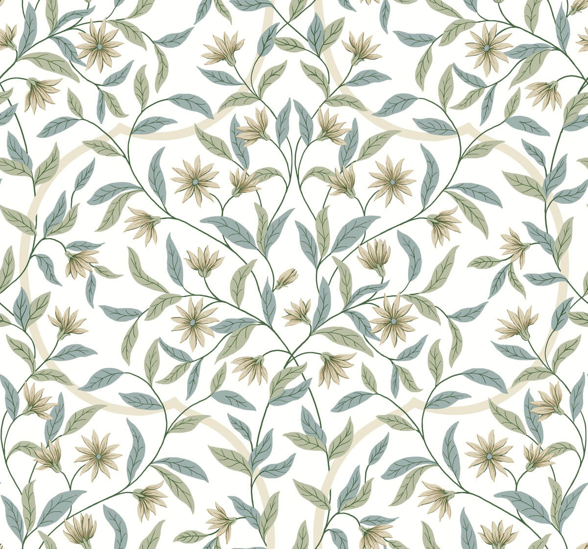 York Greenhouse Jasmine Wallpaper - Eucalyptus