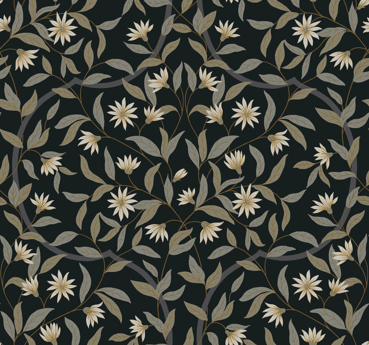 Fragrant and lovely, pattern Jasmine’s bright blooms live in the embrace of climbing, leaves, and vines.