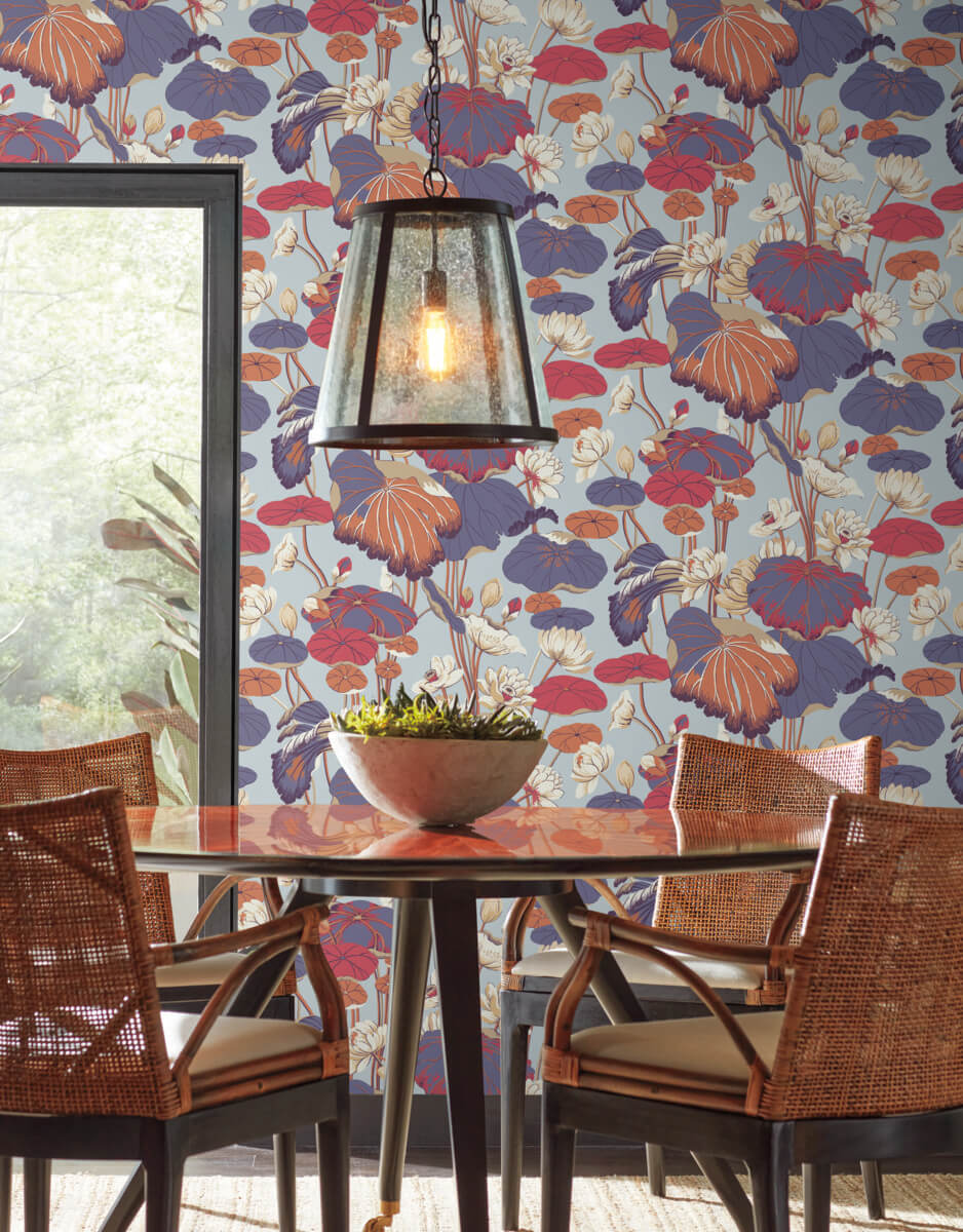 York Greenhouse Lotus Pond Wallpaper - Sky & Multi