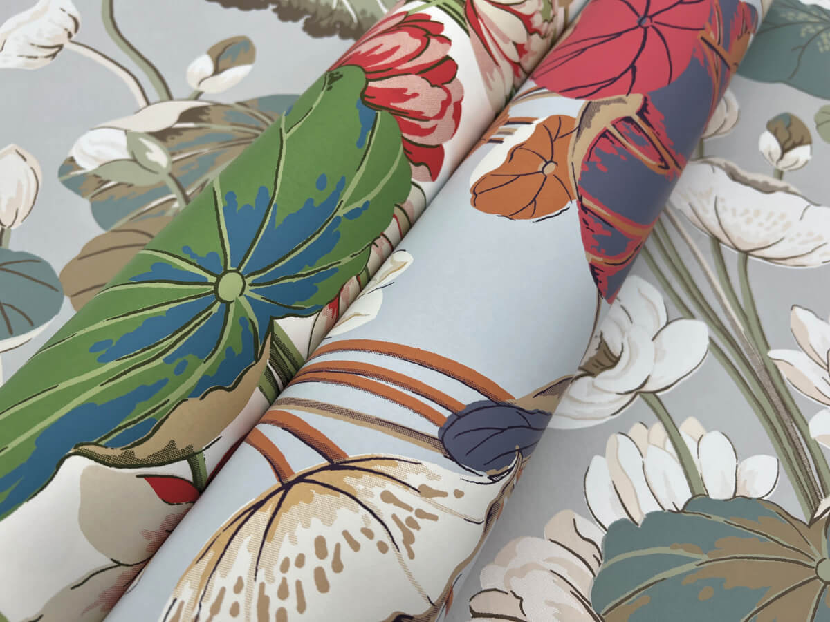 Asian images of a floating world filled with lily pads, lotus flowers, and still waters match Lily Pond's classic sophistication.