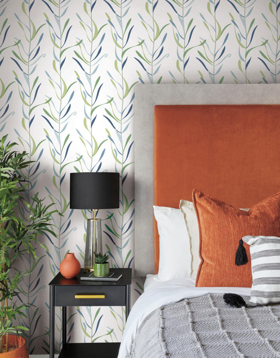 The stylized trailing tendrils of pattern Chloe Vine playfully hint at the murmur of leaves on a summer breeze.
