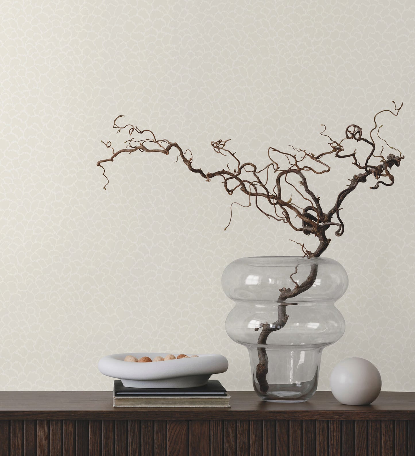 The wildlife and underbrush of the African savanna inspire Nadie’s organic textural abstract pattern, shown here in creamy white with pure white. This Nadie Wallpaper measures approximately 27 inches wide by 27 feet long, measuring approximately 60.8 square feet per roll. The distinction of timeless style.