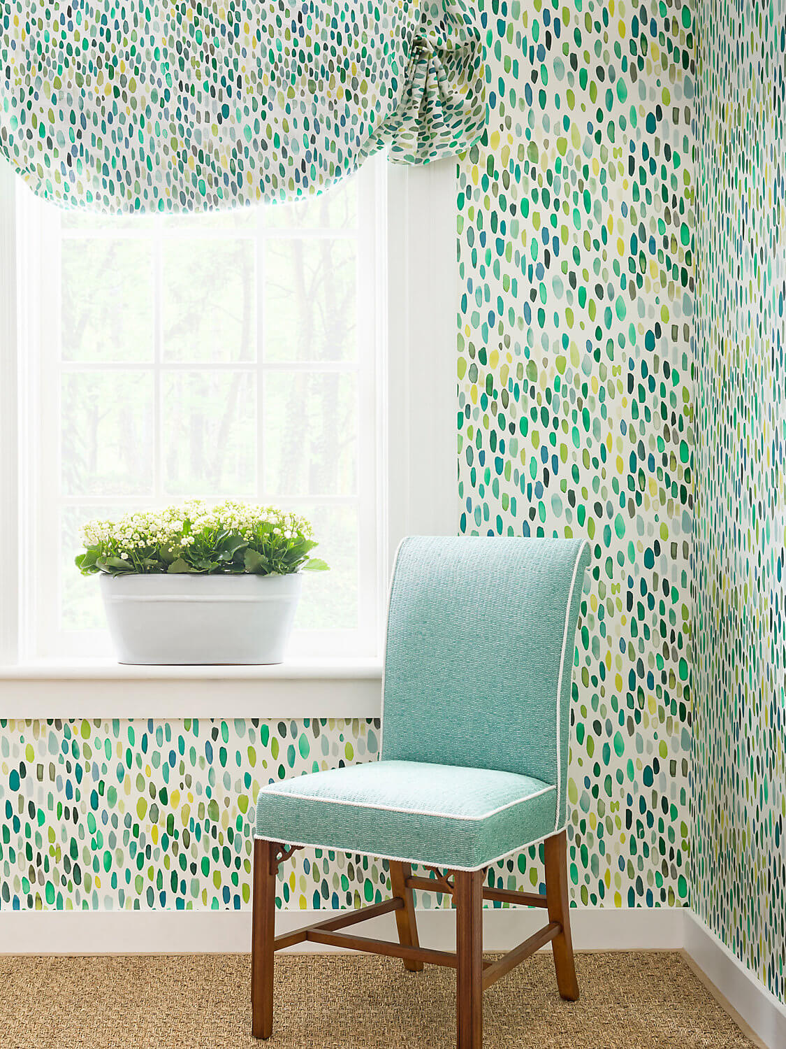 A best-selling pattern that is transitional and joyful, Jamboree Wallpaper features multicolored, hand painted brush strokes and a painterly aesthetic. Digitally printed on 100% paper with a slightly enlarged scale.