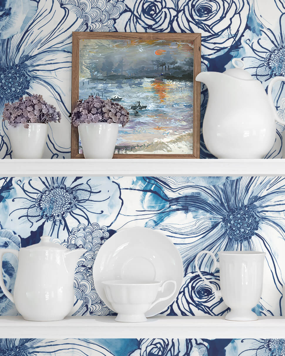 Harry & Grace Ink Rose Peel & Stick Wallpaper - Celtic Blue