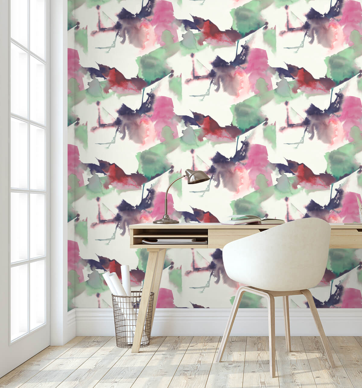Harry & Grace Watercolor Block Peel & Stick Wallpaper - Fuchsia & Mint Green