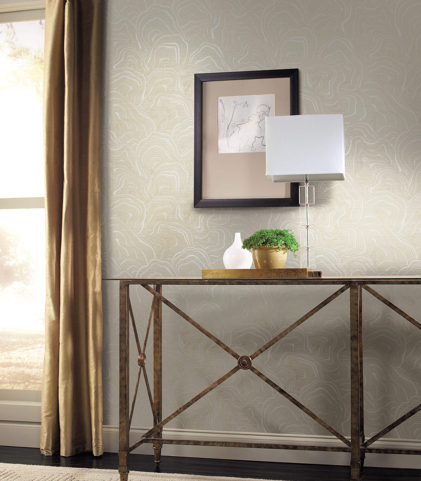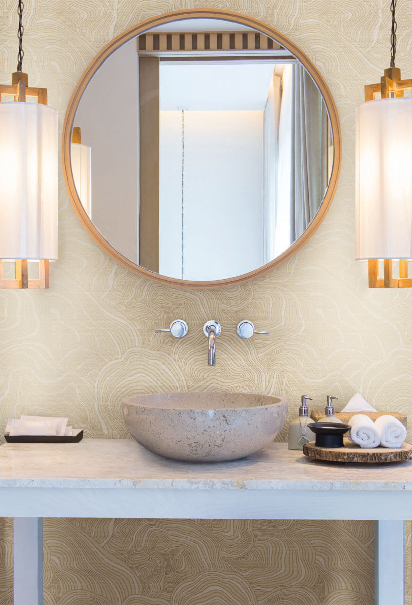 The organic layers of gemstones inspired wallpaper pattern Geodes stratified monochromatic layers, defined with a touch of metallic glimmer. The Ronald Redding 24 Karat collection exemplifies this blend of quiet sophistication and fine quality with the glamour of modern urban living.