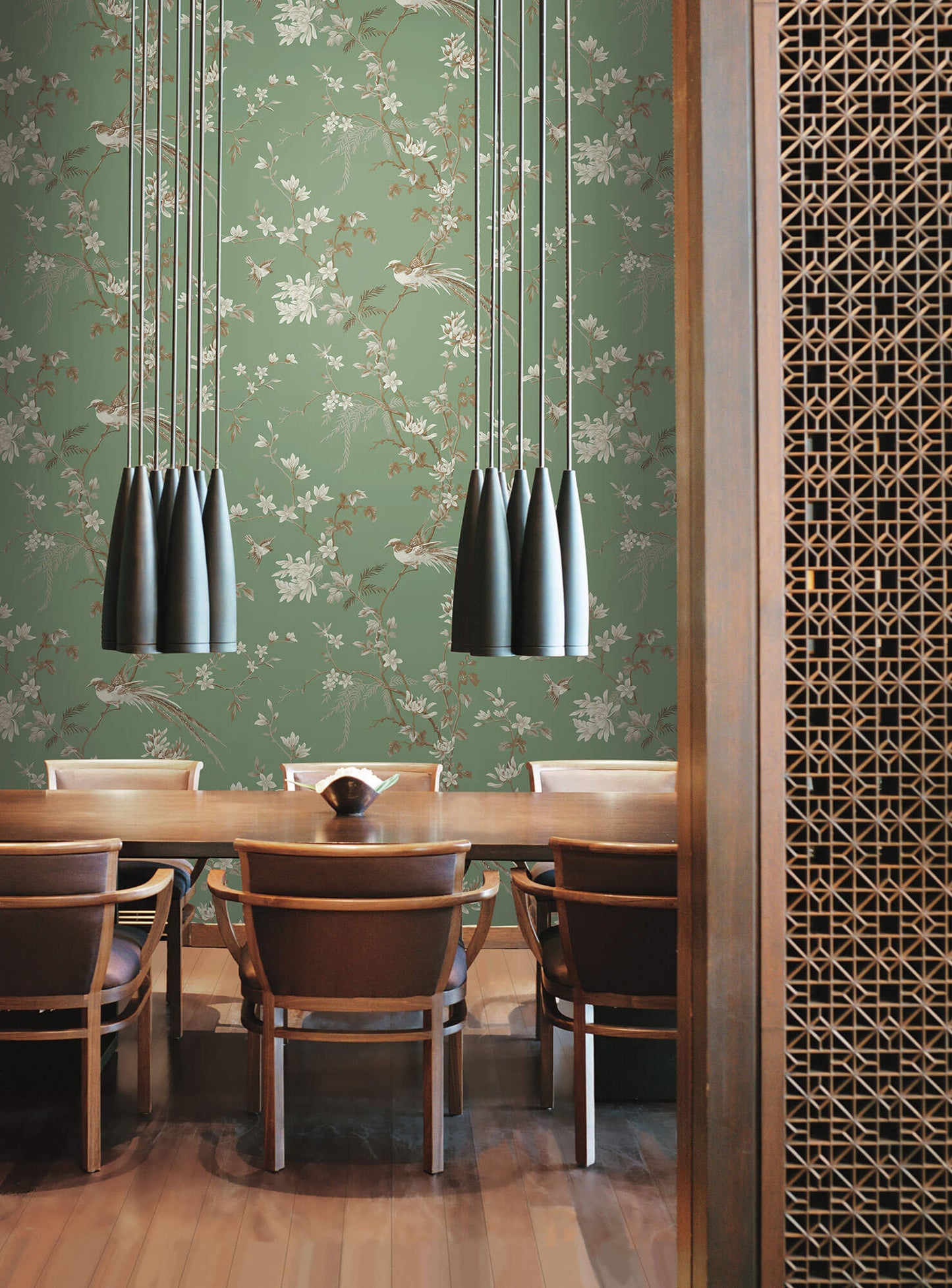 Ronald Redding 24 Karat Bird & Blossom Chinoiserie Wallpaper - Green