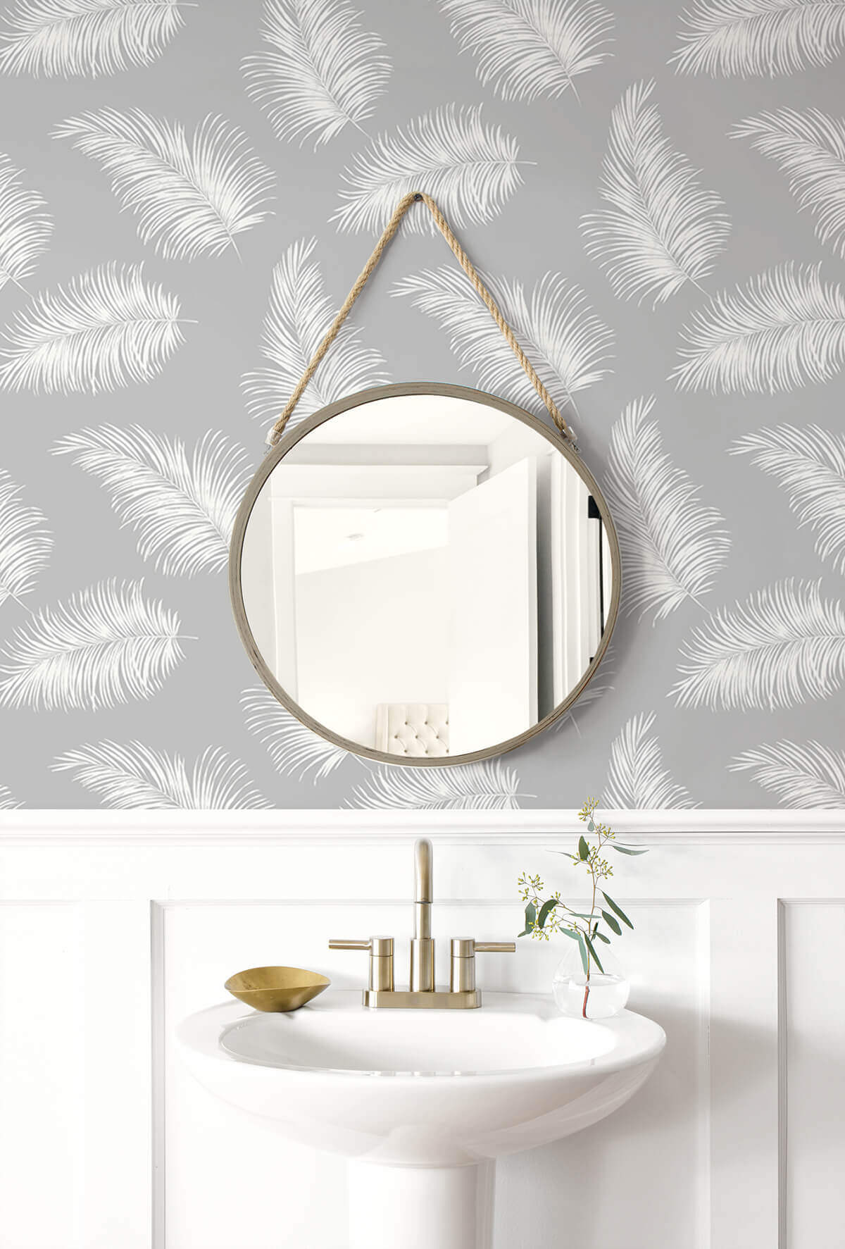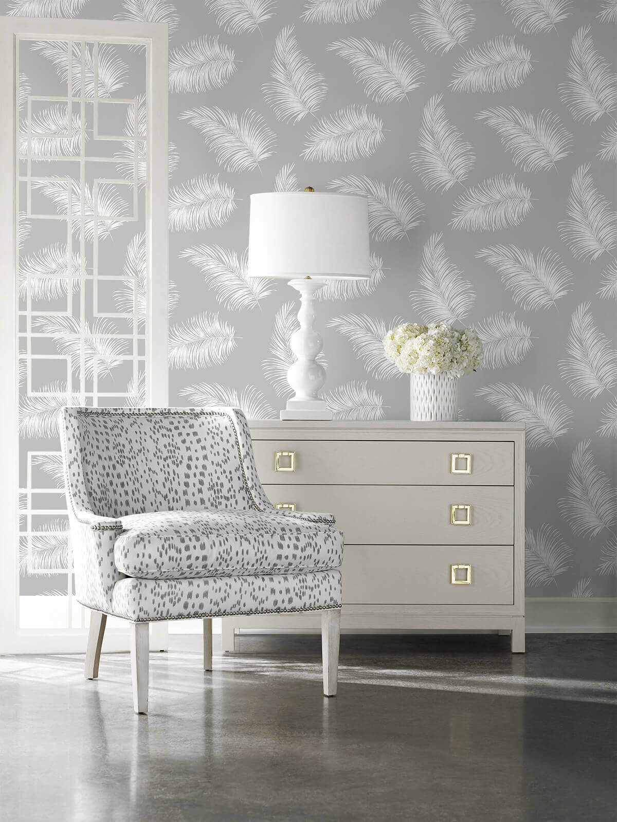 Lillian August Tossed Palm Peel & Stick Wallpaper - Gray