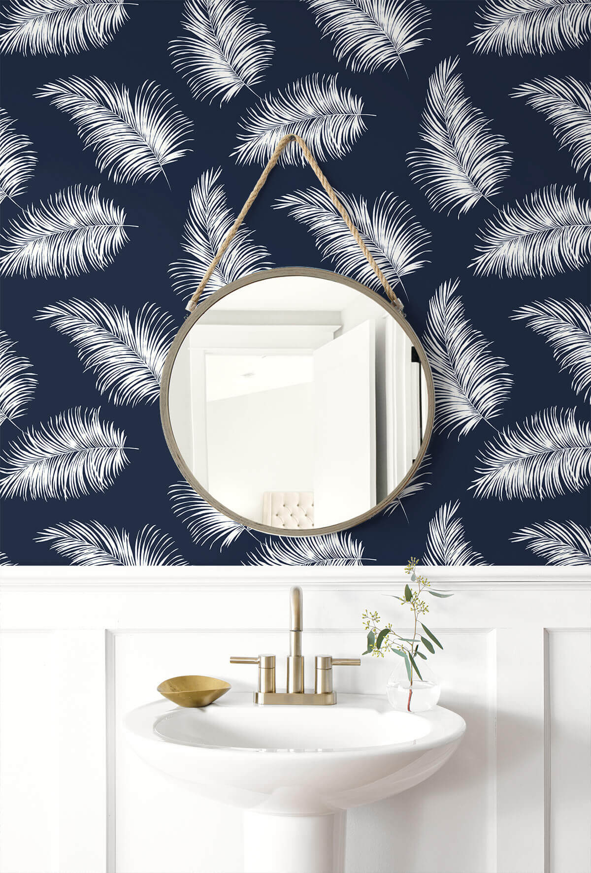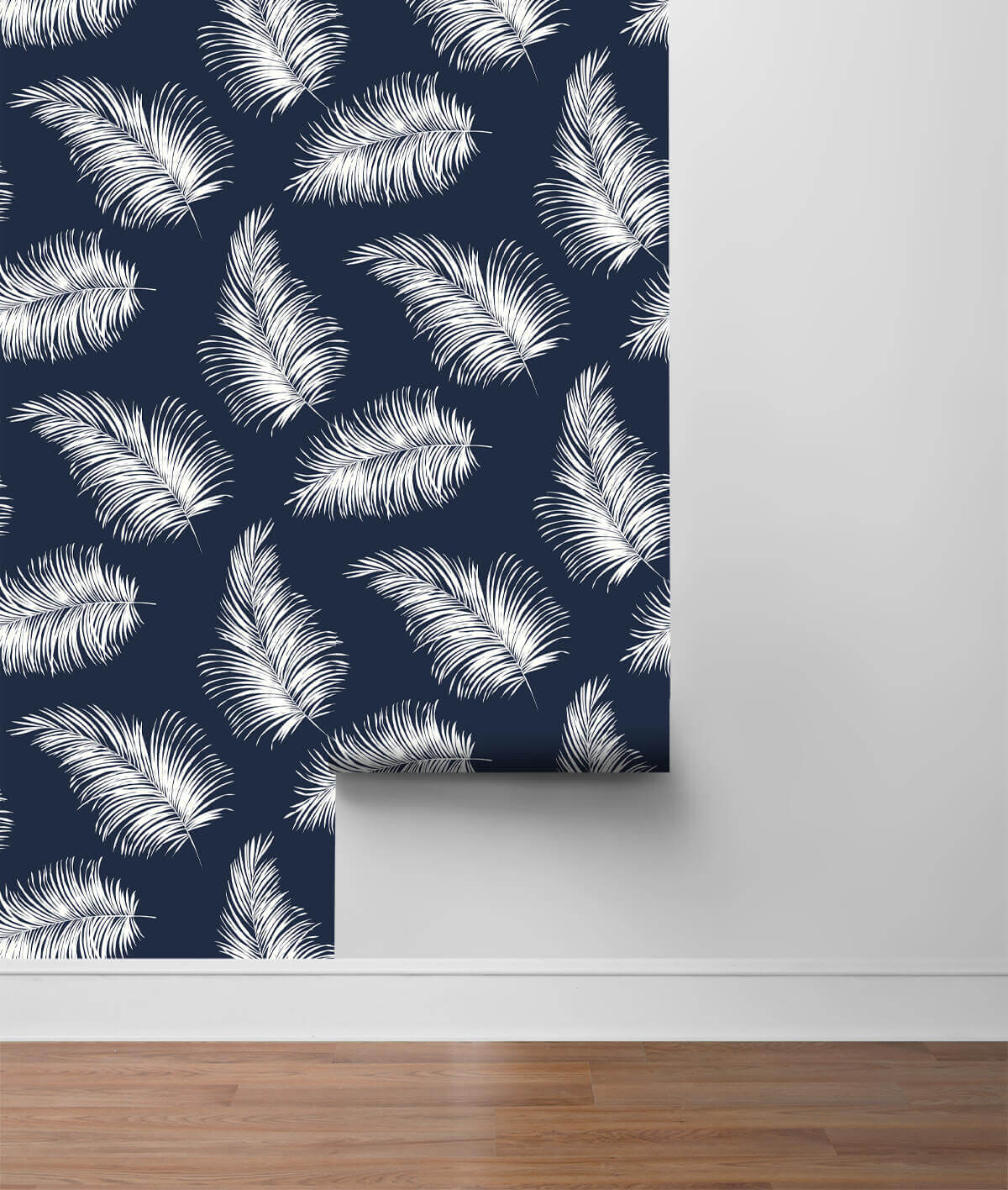 Lillian August Tossed Palm Peel & Stick Wallpaper - Navy Blue