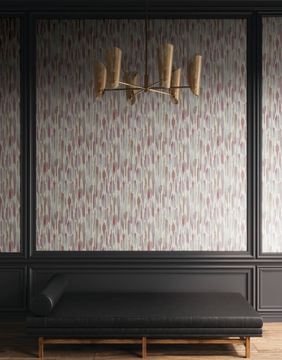 The multicolor streaks of Pluie become the force of rain against a window when rendered in subtle, raised watercolor combinations, shown in smoky blues with red and lavender. This Pluie Wallpaper measures approximately 27 inches wide by 27 feet long, measuring approximately 60.8 square feet per roll. A retrospective from the private collections of Christiane Lemieux featuring global, artistic, and handcrafted designs. Lemieux et Cie is luxury in perfect minimalism, edited to be richly layered yet effortlessly relaxed. This is deeply personal style built on an obsessive dedication to quality, craftsmanship, and the perfection found in the imperfect. A retrospective from the private collections of Christiane Lemieux featuring global, artistic, and handcrafted designs.