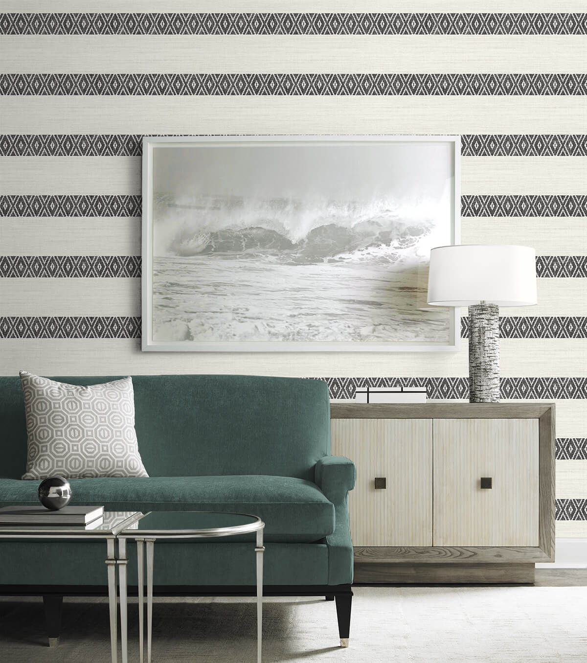 Lillian August Coastal Haven Alani Geo Stripe Wallpaper - Charcoal