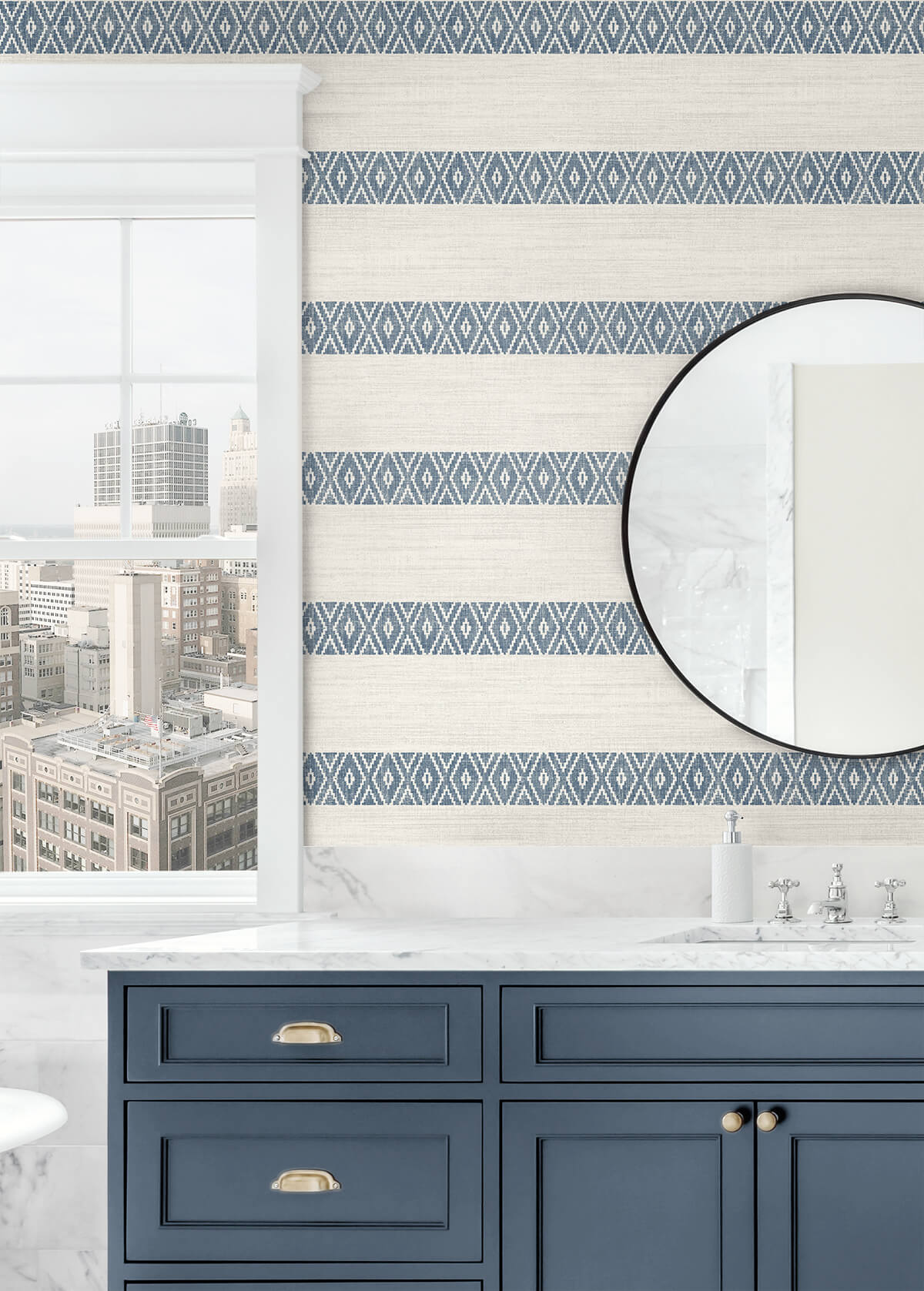 Lillian August Coastal Haven Alani Geo Stripe Wallpaper - Nautical Blue