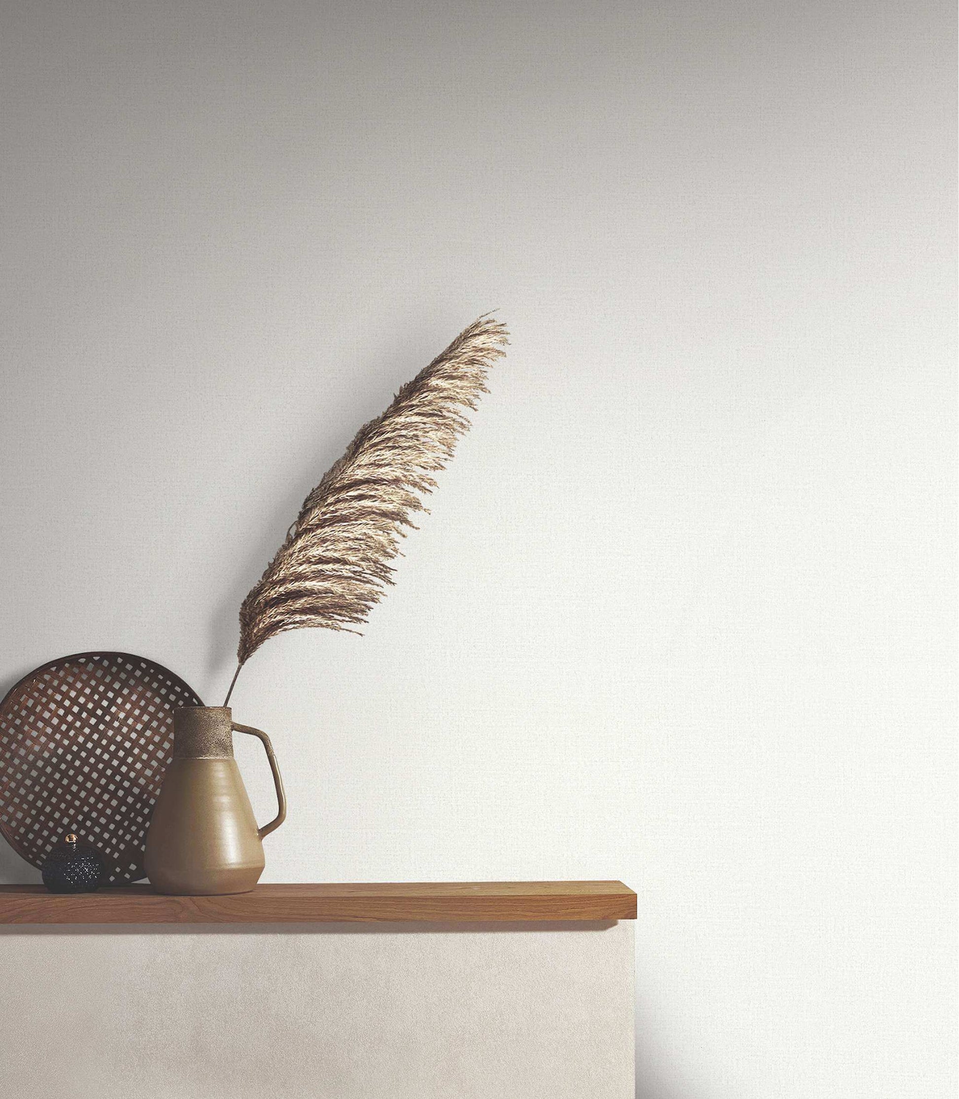 Pattern Cabric's delicate faux fabric weave is subtly embellished with hints of pearlescence. Seen here in crisp white. Cabric is an unpasted, vinyl wallpaper measuring 27.6 inches wide by 33 feet long, covering approximately About 75.9 square feet square feet per roll. The Antonina Vella Opulent Accents collection features luxury embossed vinyl wallpaper with rich texture and modern elegance. Designed by Antonina Vella for York Wallcoverings, these non-woven wallpapers add depth, durability, and sophisticated style to both residential and commercial spaces.