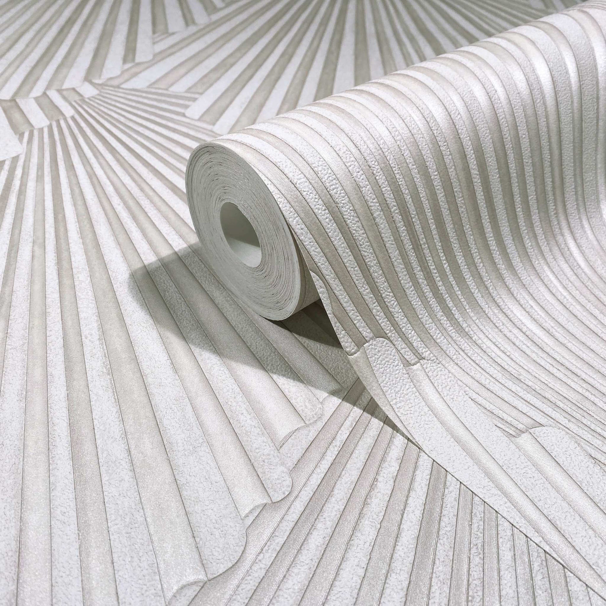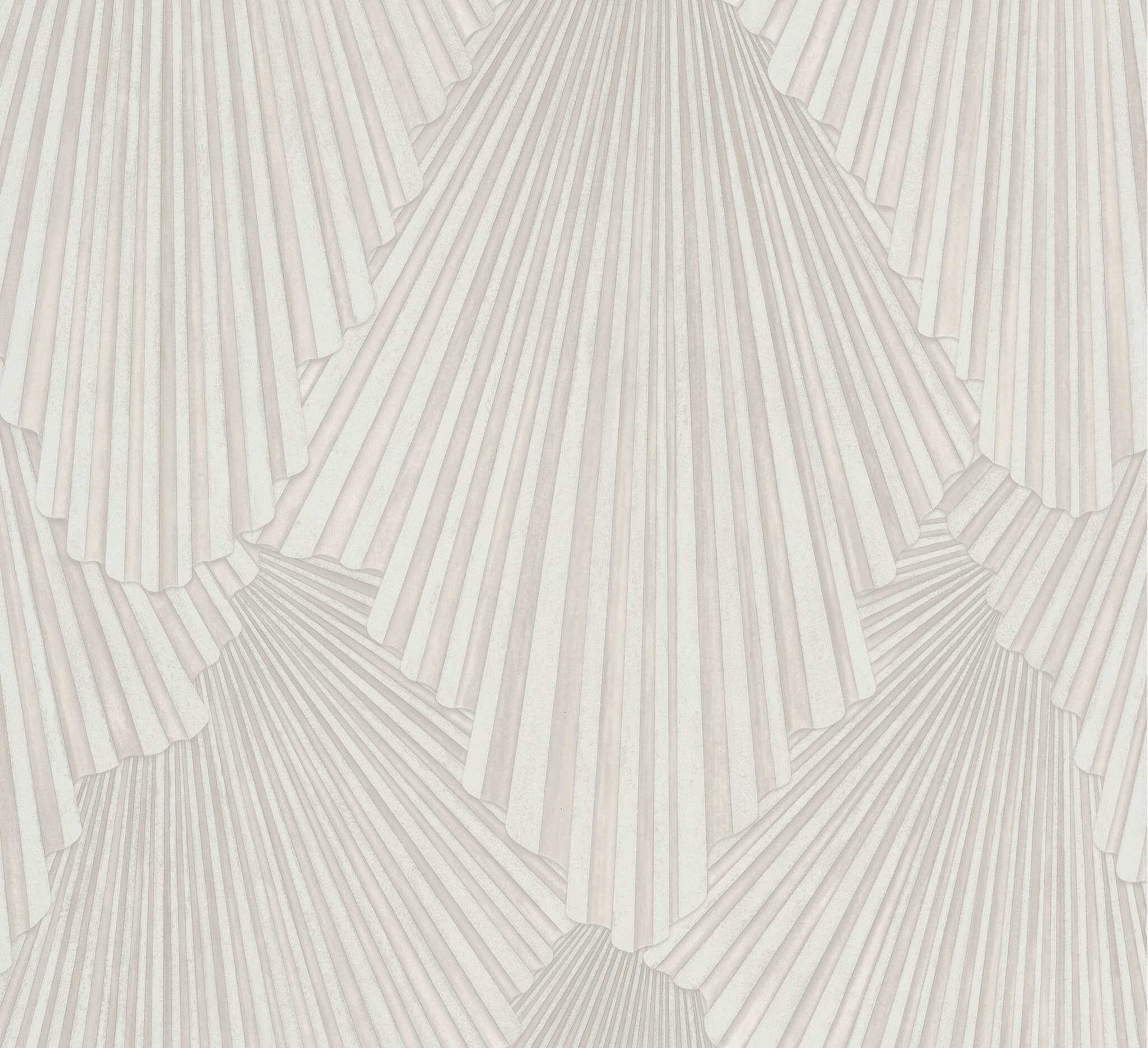 Scalloped, fanning forms overlap to create a chic damask pattern in Art Deco-inspired design Lumiere. Featured here in two-tone dove and warm grey. Lumiere is an unpasted, vinyl wallpaper measuring 27.6 inches wide by 33 feet long, covering approximately About 75.9 square feet square feet per roll. The Antonina Vella Opulent Accents collection features luxury embossed vinyl wallpaper with rich texture and modern elegance. Designed by Antonina Vella for York Wallcoverings, these non-woven wallpapers add depth, durability, and sophisticated style to both residential and commercial spaces.