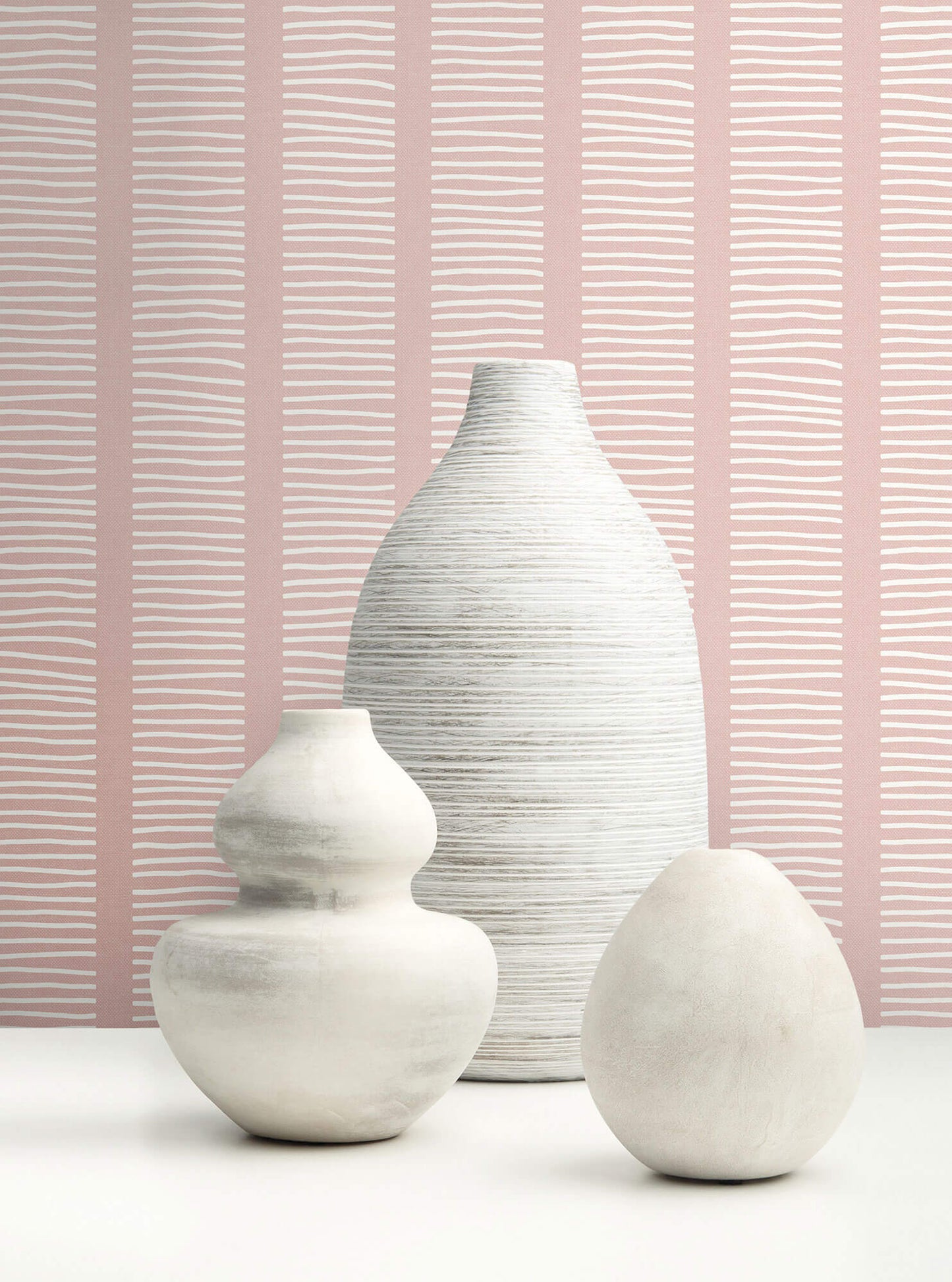 Wavering crisp white strokes align to form this modern, striped wallpaper print. The screen-printed pattern will bring the ever popular, contemporary style of coastal chic to your next decor project. With a design story inspired by the sea this wallcovering will make for an environment of easy living and transform your home into a nautical paradise.