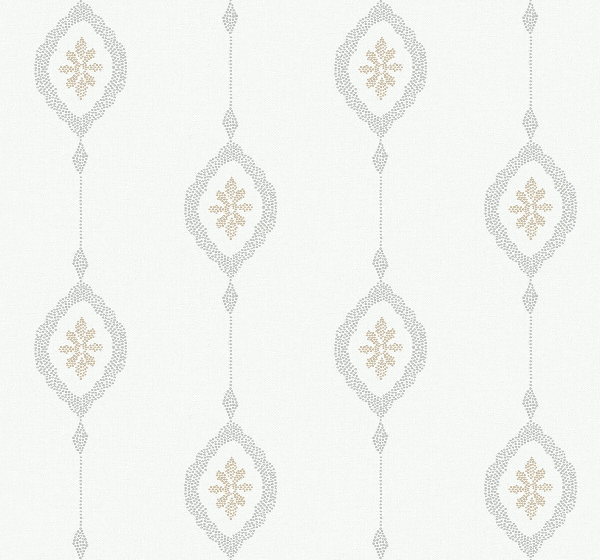 Linked sand dollar shapes are depicted with a unique pointillism technique to create this beach wallpaper print. The screen-printed pattern will bring the ever popular, contemporary style of coastal chic to your next decor project. With a design story inspired by the sea this wallcovering will make for an environment of easy living and transform your home into a nautical paradise.