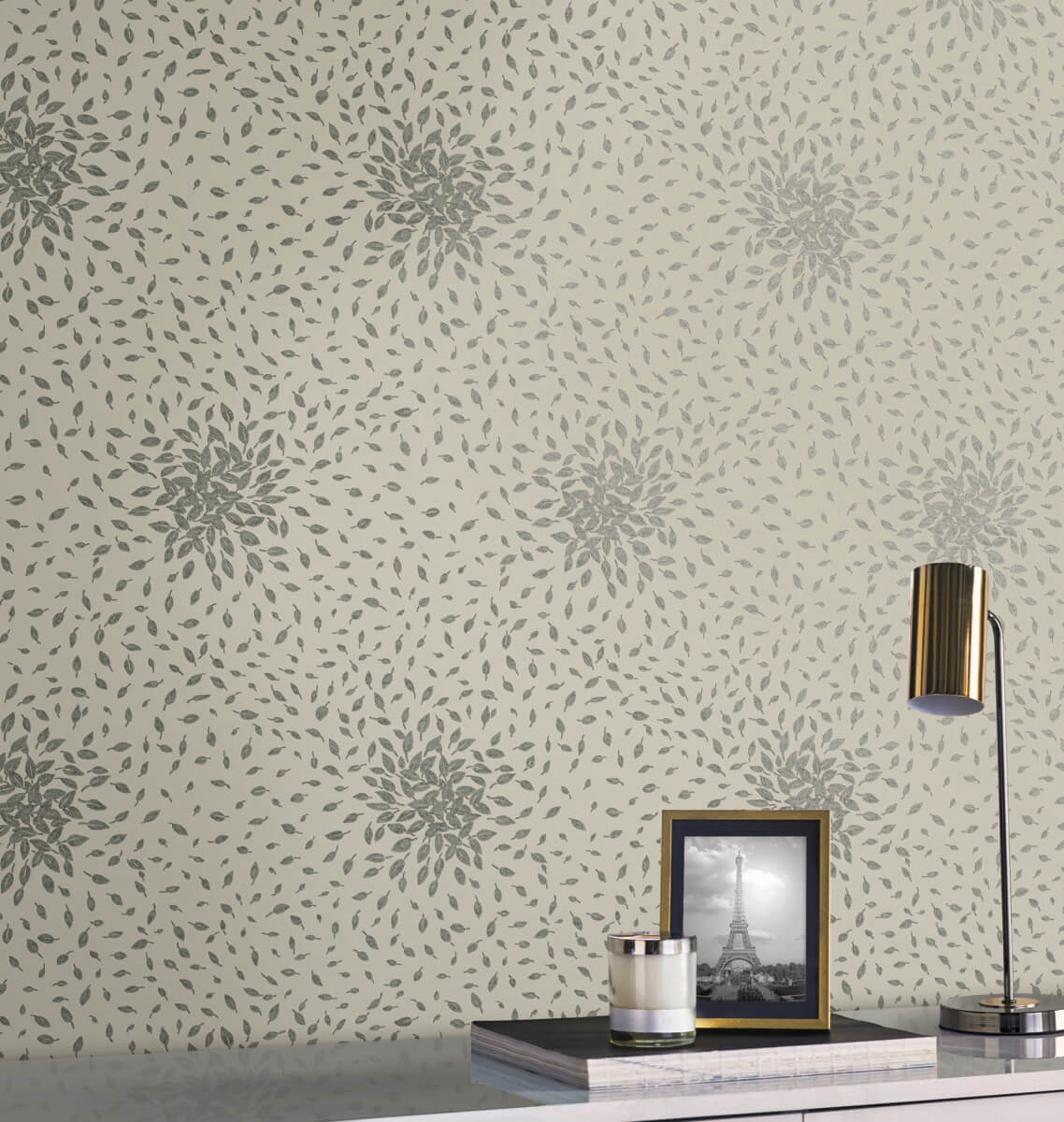 A bluster and flurry of metallic shapes are created by the swirling silhouette pattern of Petite Leaves, shown in sand beige and silver metallic. This Petite Leaves Wallpaper measures approximately 27 inches wide by 26.9 feet long, measuring approximately 60.5 square feet per roll. The long awaited follow-up to the popular first release, Modern Metals Second Edition energizes contemporary spaces with charismatic visual artistry defined by the allure of luminous metallic.