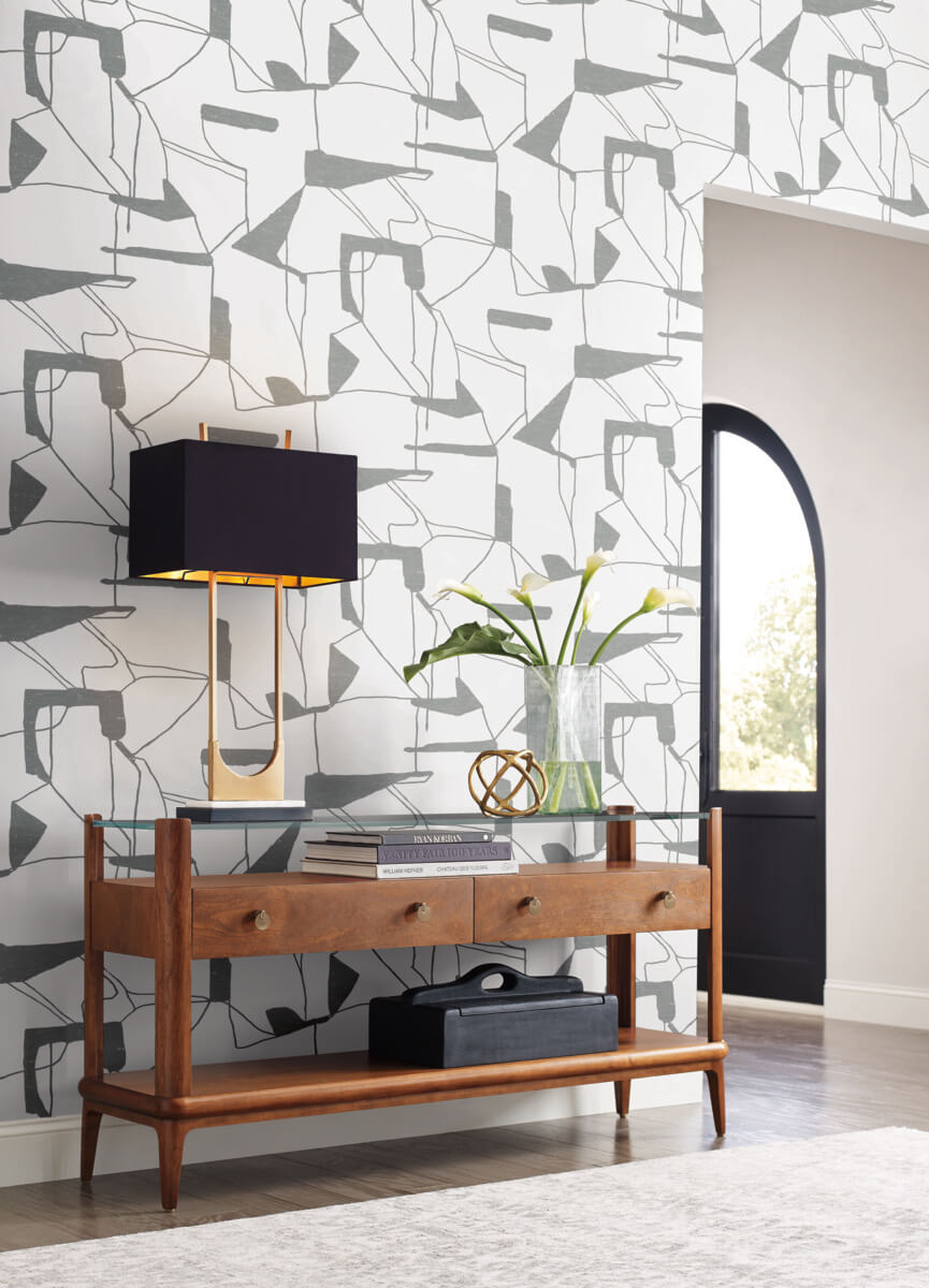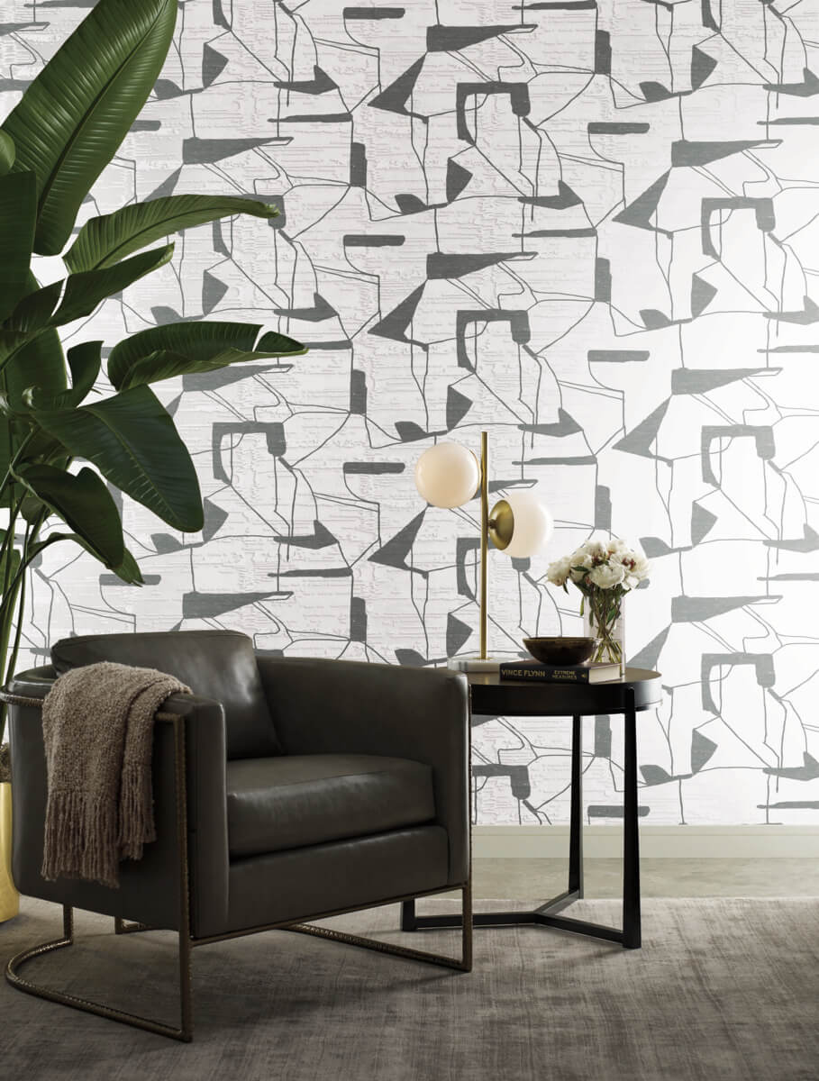 Antonina Vella Modern Metals Abstract Geo Wallpaper - White & Silver