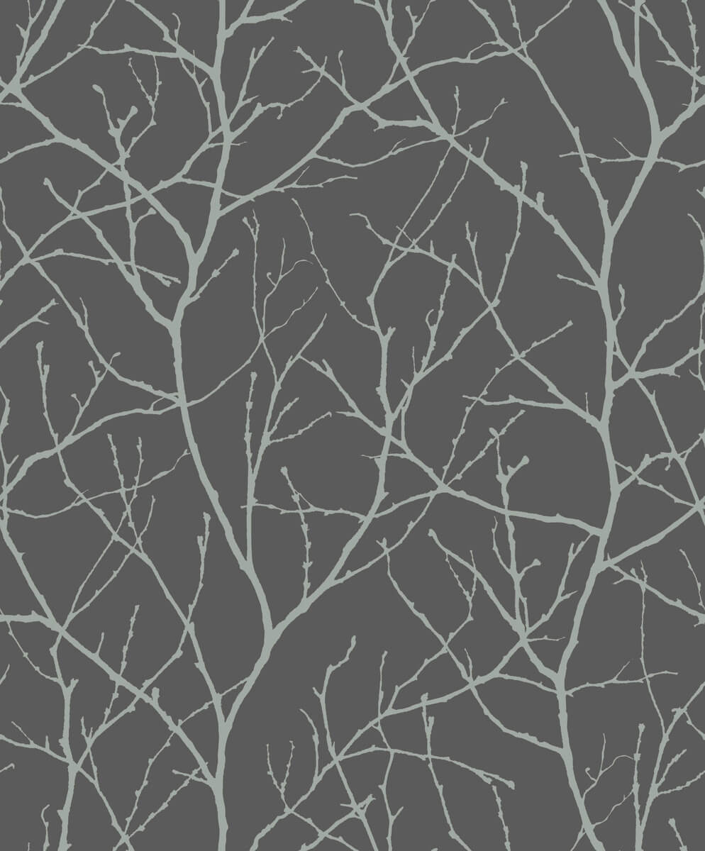 Antonina Vella Modern Metals Trees Silhouette Wallpaper - Charcoal & Silver