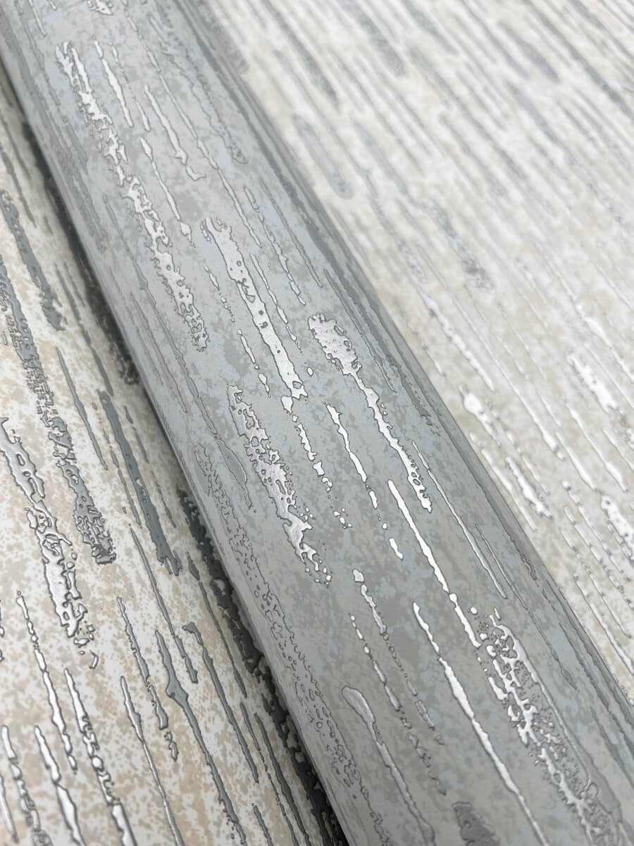 A downpour of vertical metallic brushstrokes and droplets create Metallic Cascade’s rugged, lustrous stria, shown in creamy linen with silver metallic. This Metallic Cascade Wallpaper measures approximately 27 inches wide by 26.9 feet long, measuring approximately 60.5 square feet per roll. The long awaited follow-up to the popular first release, Modern Metals Second Edition energizes contemporary spaces with charismatic visual artistry defined by the allure of luminous metallic.