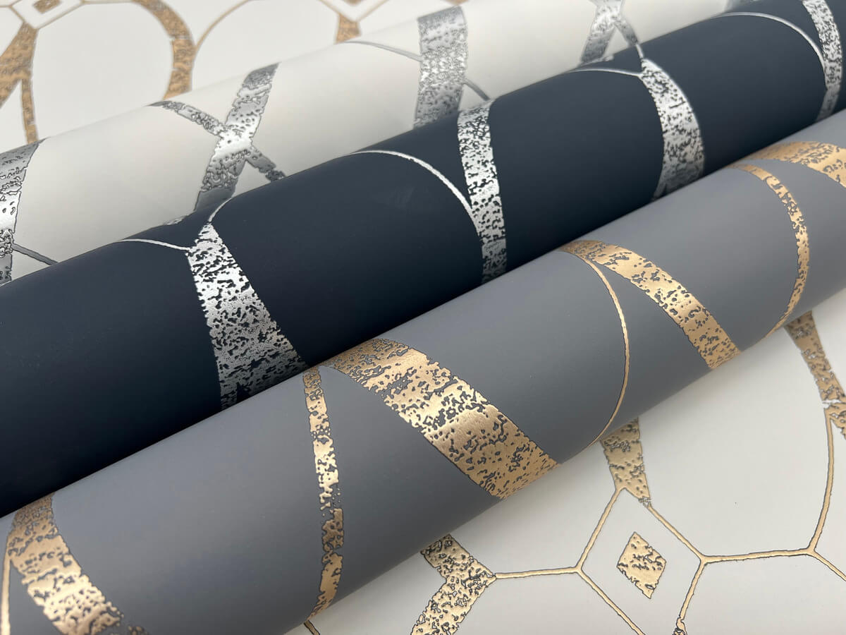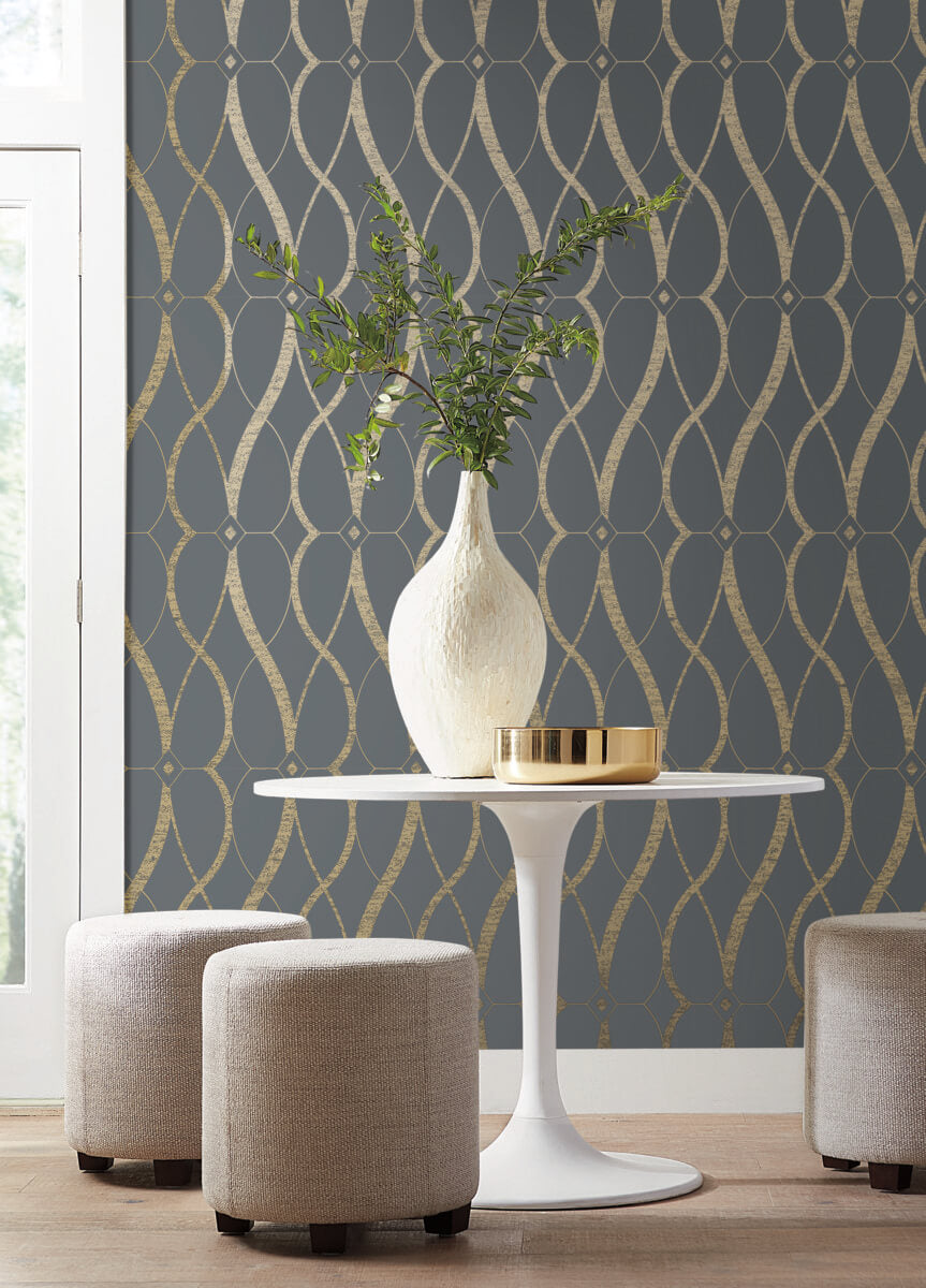 Antonina Vella Modern Metals Graceful Geo Wallpaper - Smoke & Gold