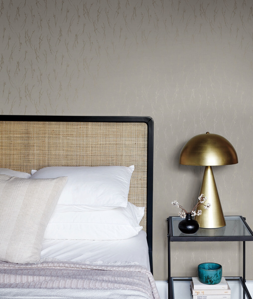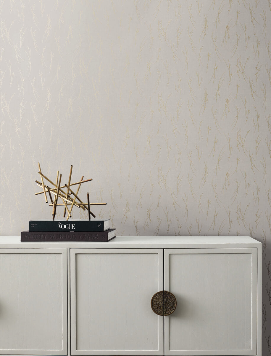 Antonina Vella Modern Metals Sprigs Wallpaper - Light Grey & Gold