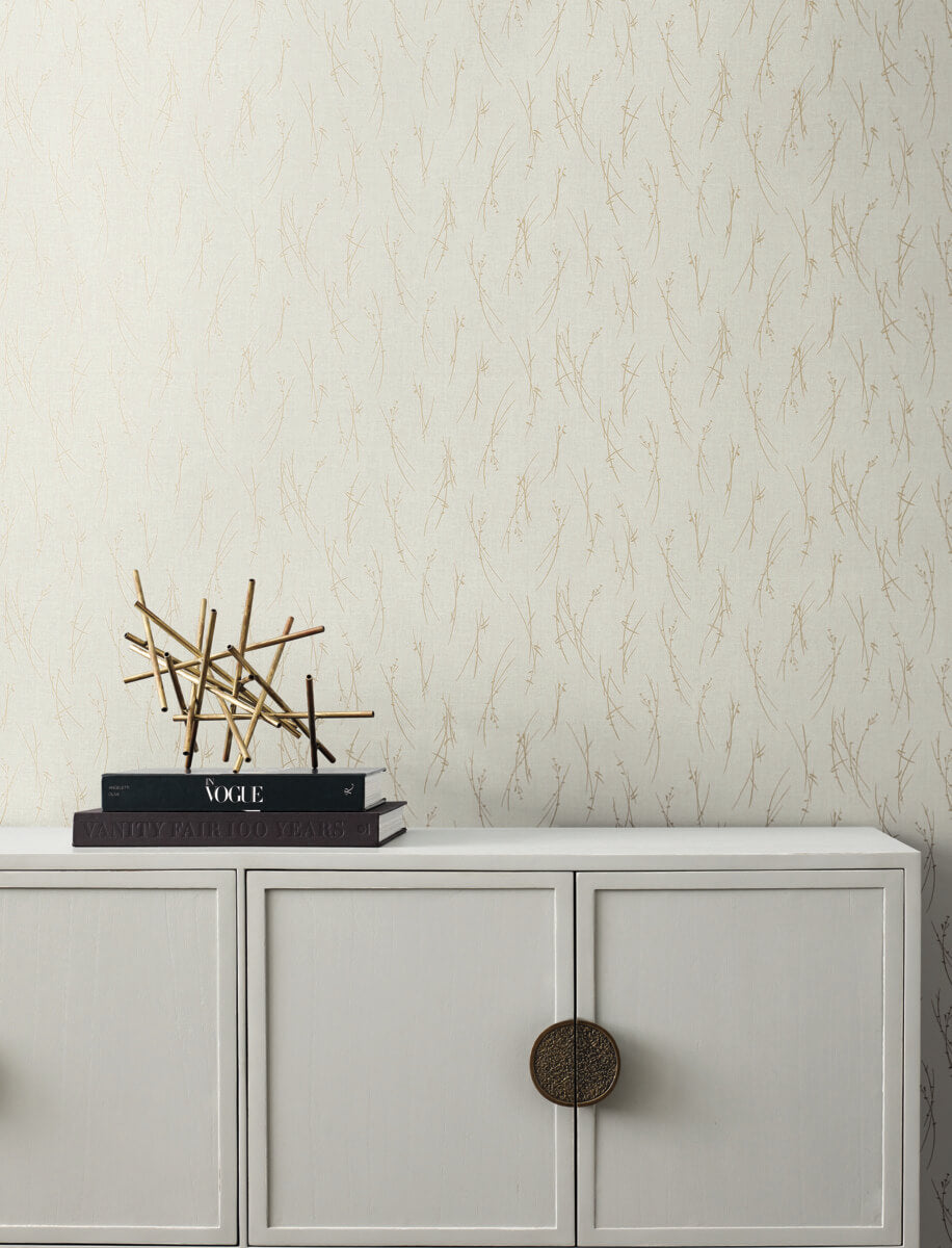 Antonina Vella Modern Metals Sprigs Wallpaper - Cream & Gold