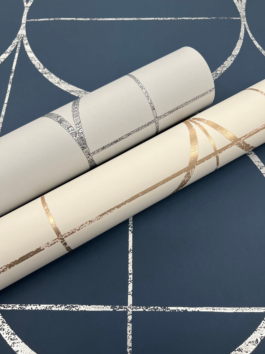 Sun Circle’s perfect geometric form of circles, lines, and grids, when rendered in metallic, recall the streamlined elegance of the Art Deco style, shown in natural cream with gold metallic . This Sun Circles Wallpaper measures approximately 27 inches wide by 26.9 feet long, measuring approximately 60.5 square feet per roll. The long awaited follow-up to the popular first release, Modern Metals Second Edition energizes contemporary spaces with charismatic visual artistry defined by the allure of luminous metallic.