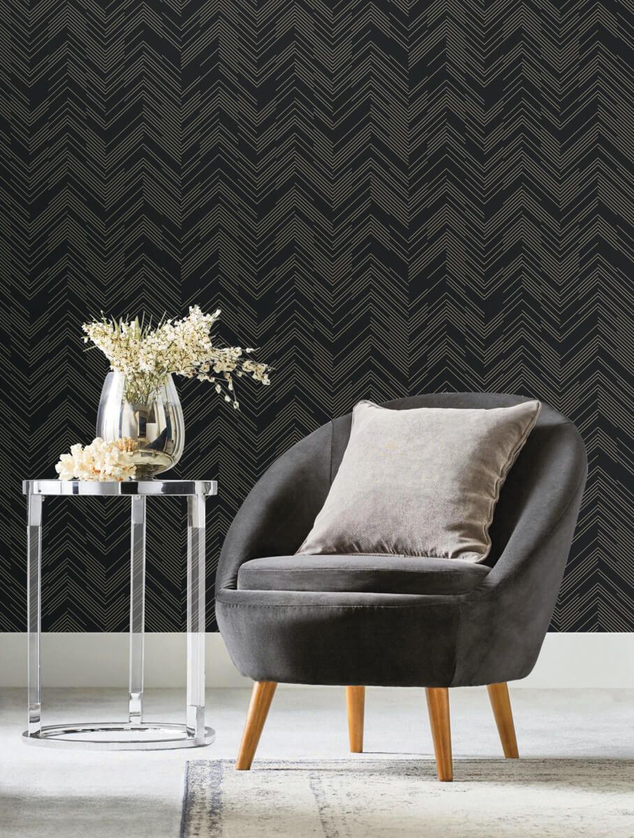 Antonina Vella Modern Metals Polished Chevron Wallpaper - Black & Gold