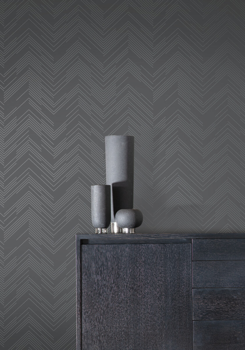 Antonina Vella Modern Metals Polished Chevron Wallpaper - Charcoal & Silver