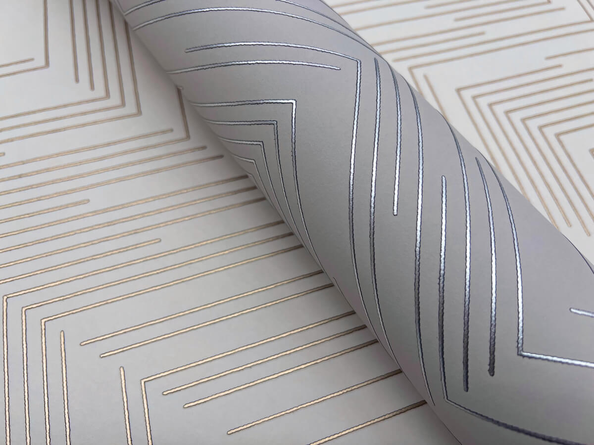 The suggestion of a geometric metallic pattern, Polished Chevron provides an unexpected break from the conformity of style, shown in taupe brown with silver metallic. This Polished Chevron Wallpaper measures approximately 27 inches wide by 26.9 feet long, measuring approximately 60.5 square feet per roll. The long awaited follow-up to the popular first release, Modern Metals Second Edition energizes contemporary spaces with charismatic visual artistry defined by the allure of luminous metallic.