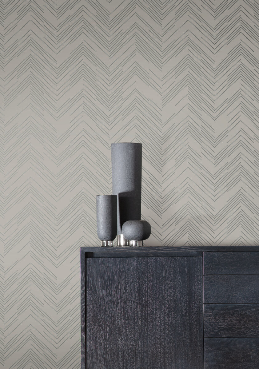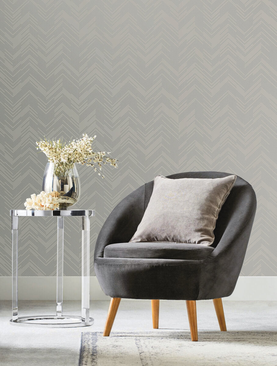 Antonina Vella Modern Metals Polished Chevron Wallpaper - Taupe & Silver