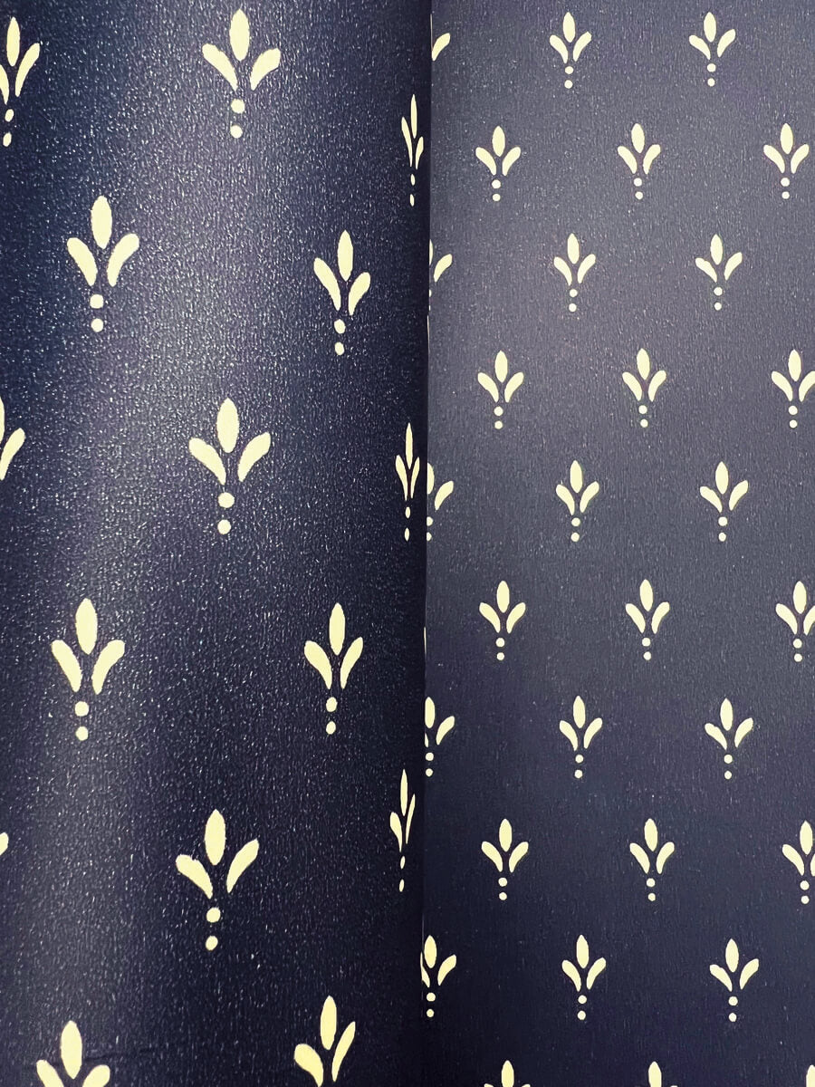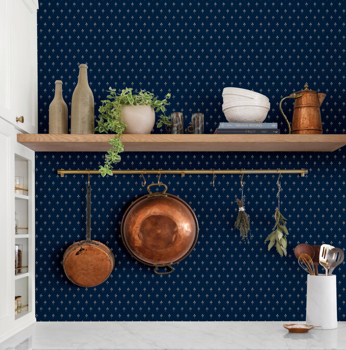 Delicate embellishment meets timeless appeal in this petite, three-leaved stamp pattern inked in taupe along a midnight blue backdrop. This Charm Wallpaper measures approximately 20.5 inches wide by 33 feet long, measuring approximately 56.4 square feet per roll. This collection of timeless wallcoverings is layered with warmth and charm, and effortlessly blends nostalgic patterns with modern designs. This assortment has a little bit of everything—simple stripes, subtle plaids, vintage motifs, and bold florals.