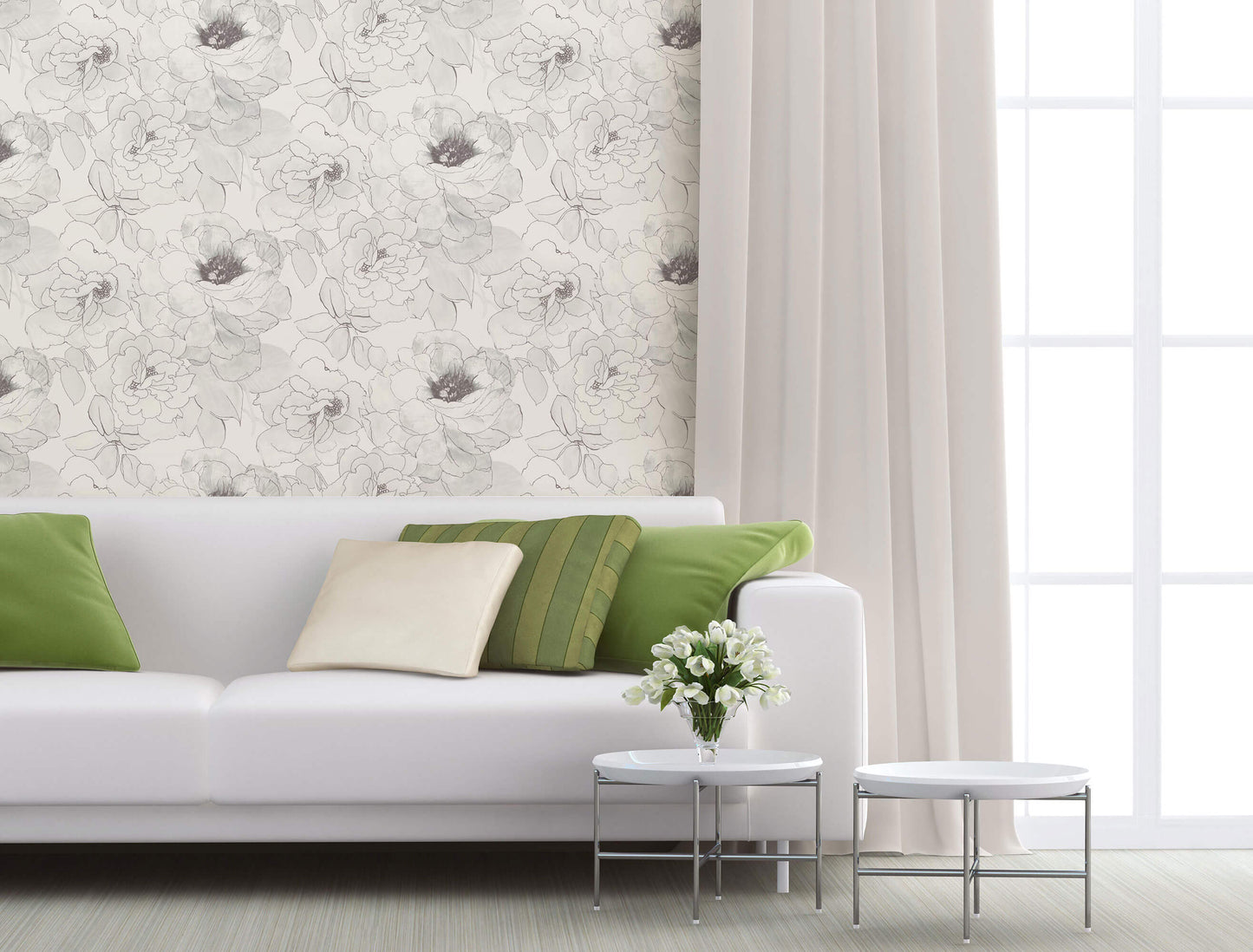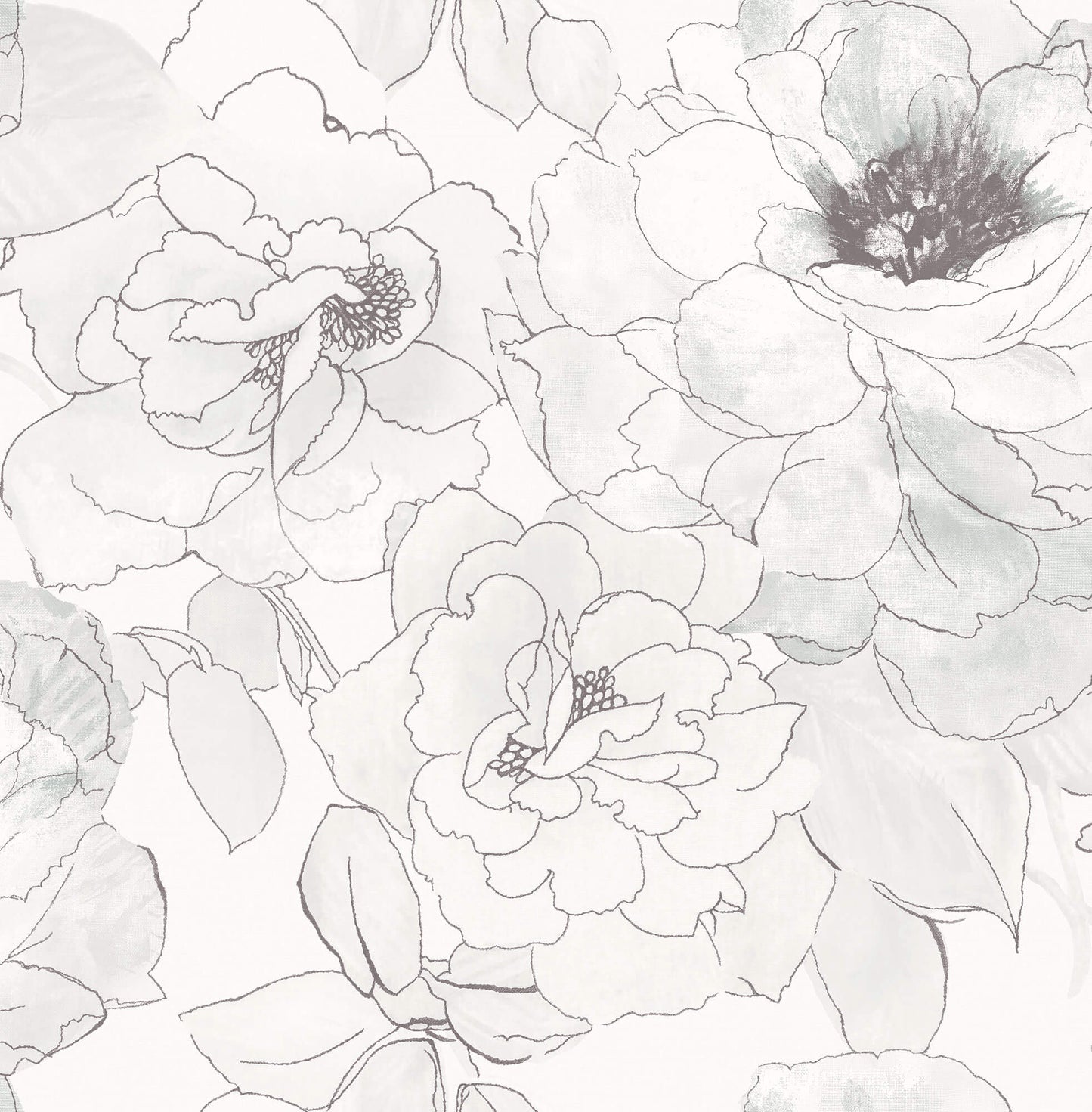 Our abstract black and white floral wallpaper is a modern take on garden minimalism. The hand rendered inky black roses are tonally shaded in charcoal etchings and smudges atop a creamy off white backdrop. Our neutral palette of carbon shadings, smoky white and charcoal stenciling bring this tonal floral cocoon to life. The still life moody blossoms are inspired by the theatrical pencil drawings of Toulouse Lautrec.